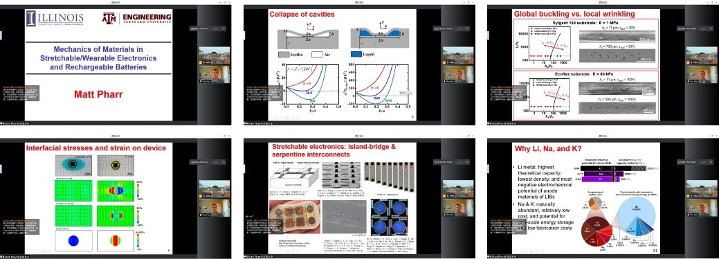 本网讯(通讯员:研会学科部 编辑:彭宇琦 审核:刘泽庭)4月7日晚,美国德州A&M大学教授Matt Pharr通过腾讯会议的方式,来番号鸽 开展了主题为“Mechanics of Materials for Stretchable/Wearable Electronics and Rechargeable Batteries(可拉伸/可穿戴电子设备和可充电电池的材料力学机制)”学术研讨会。