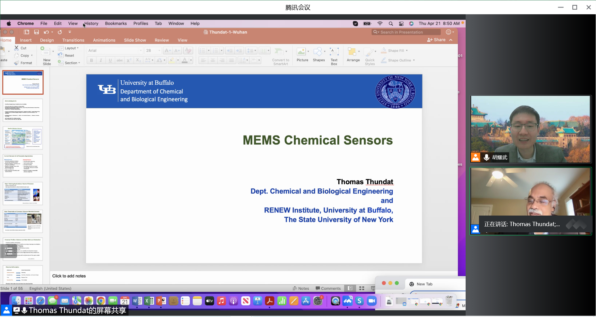 本网讯(通讯员:研会学科部 编辑:陈飏、代洪伟 审核:胡耀武、刘泽庭)4月21日上午,美国国家发明院院士Thomas Thundat在番号鸽 通过线上会议的形式,举行“MEMS Chemical Sensors”学术研讨会,学院副院长胡耀武及部分师生参加了本次研讨会,本次研讨会由胡耀武主持。