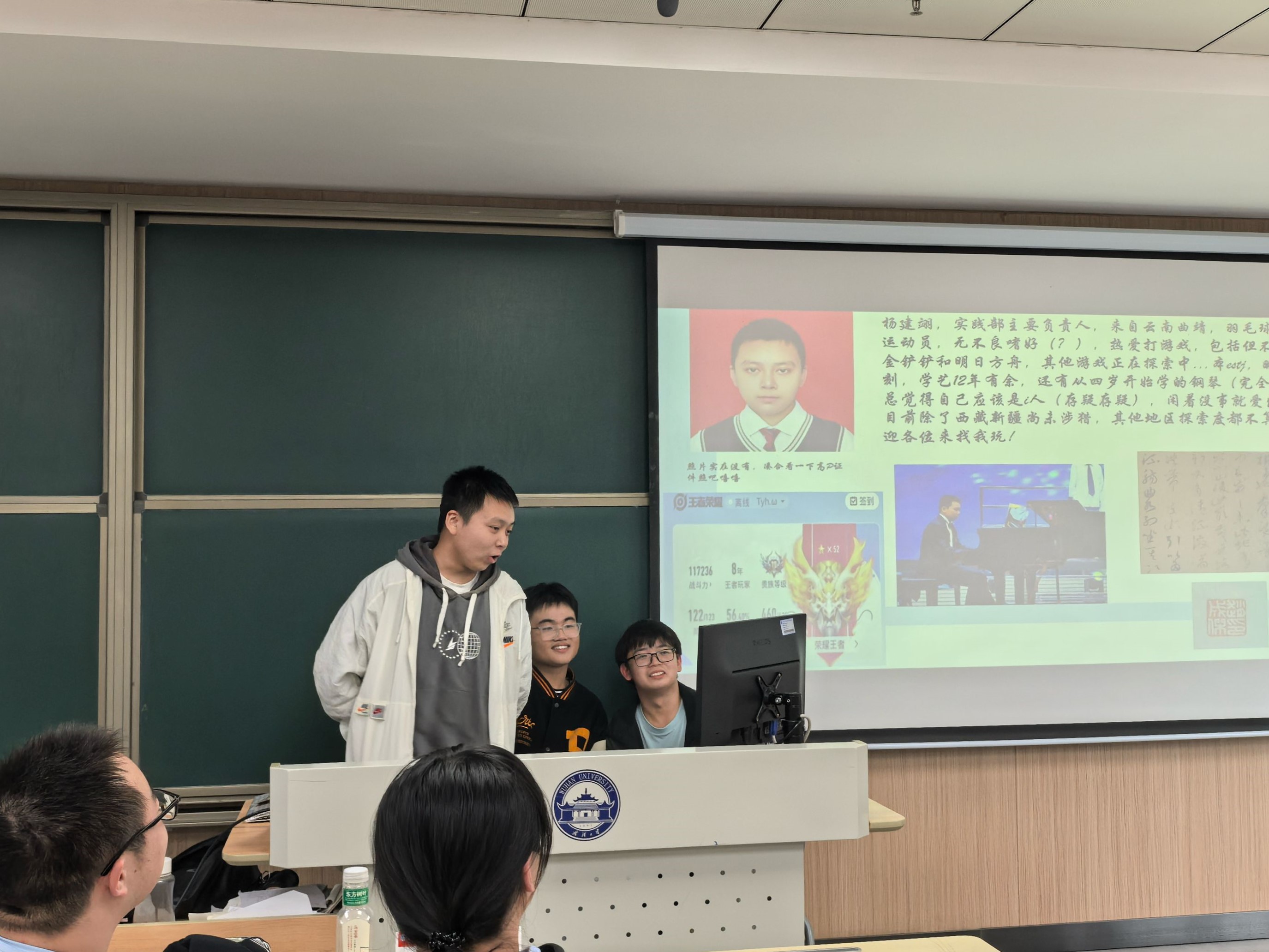 在随后的介绍环节中,各部门负责人分别介绍部门职能,并与新成员一同进行自我介绍,现场气氛活跃。首先,组织部主要负责人万昊文向大家介绍组织部的主要职能及日常工作,组织部是学院团学工作核心,负责团学相关的各种事务,日常工作包括团校开展,智慧团建管理,发展团员,推优入党等。