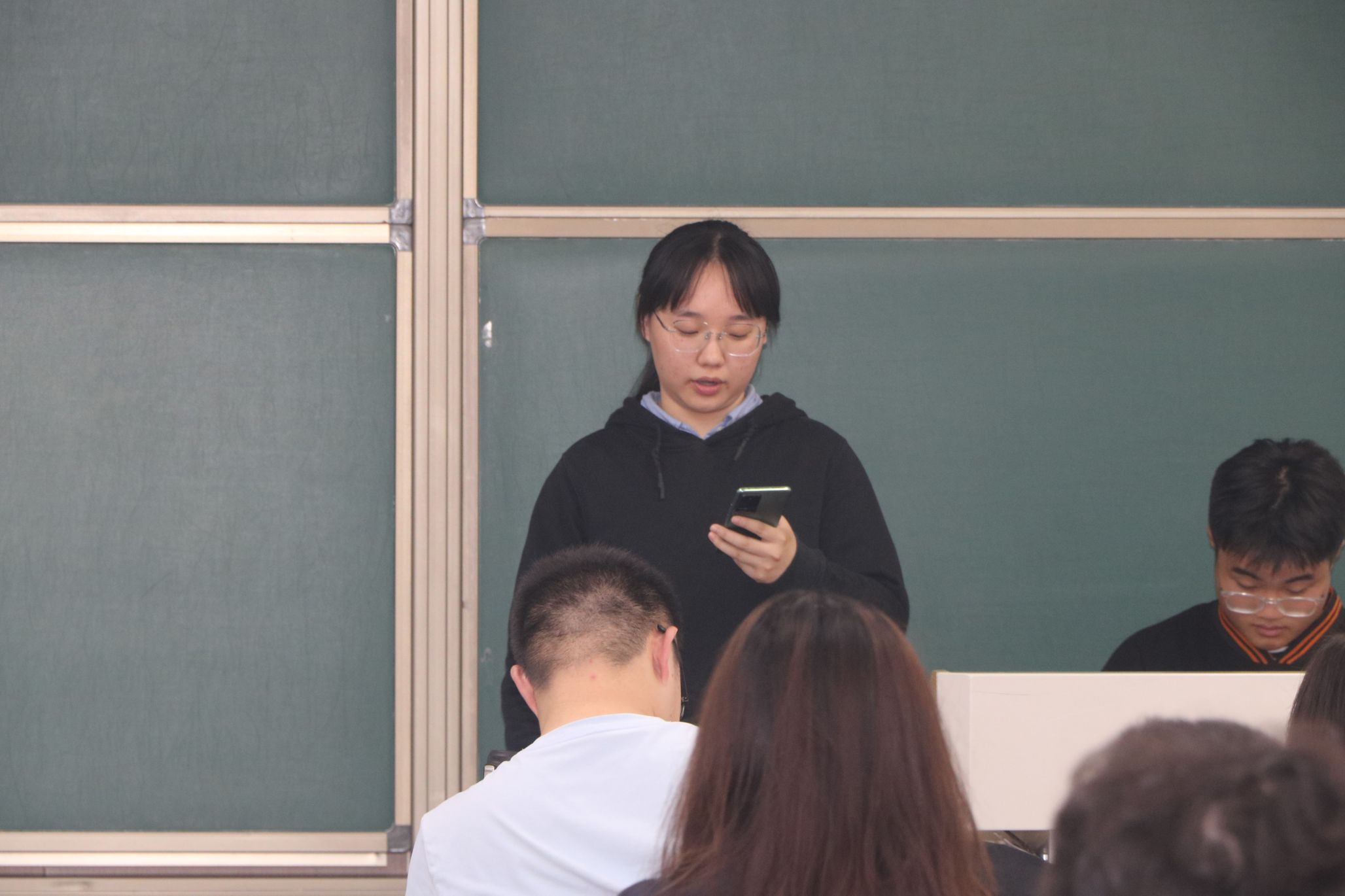 紧接着,秘书处主要负责人高玉蓉代表秘书处发言,她表明秘书处作为团委的大管家,联络起团委的上上下下,主要负责团委内部各类会议记录,院内活动的经费审核以及活动教室的出借与管理等工作。