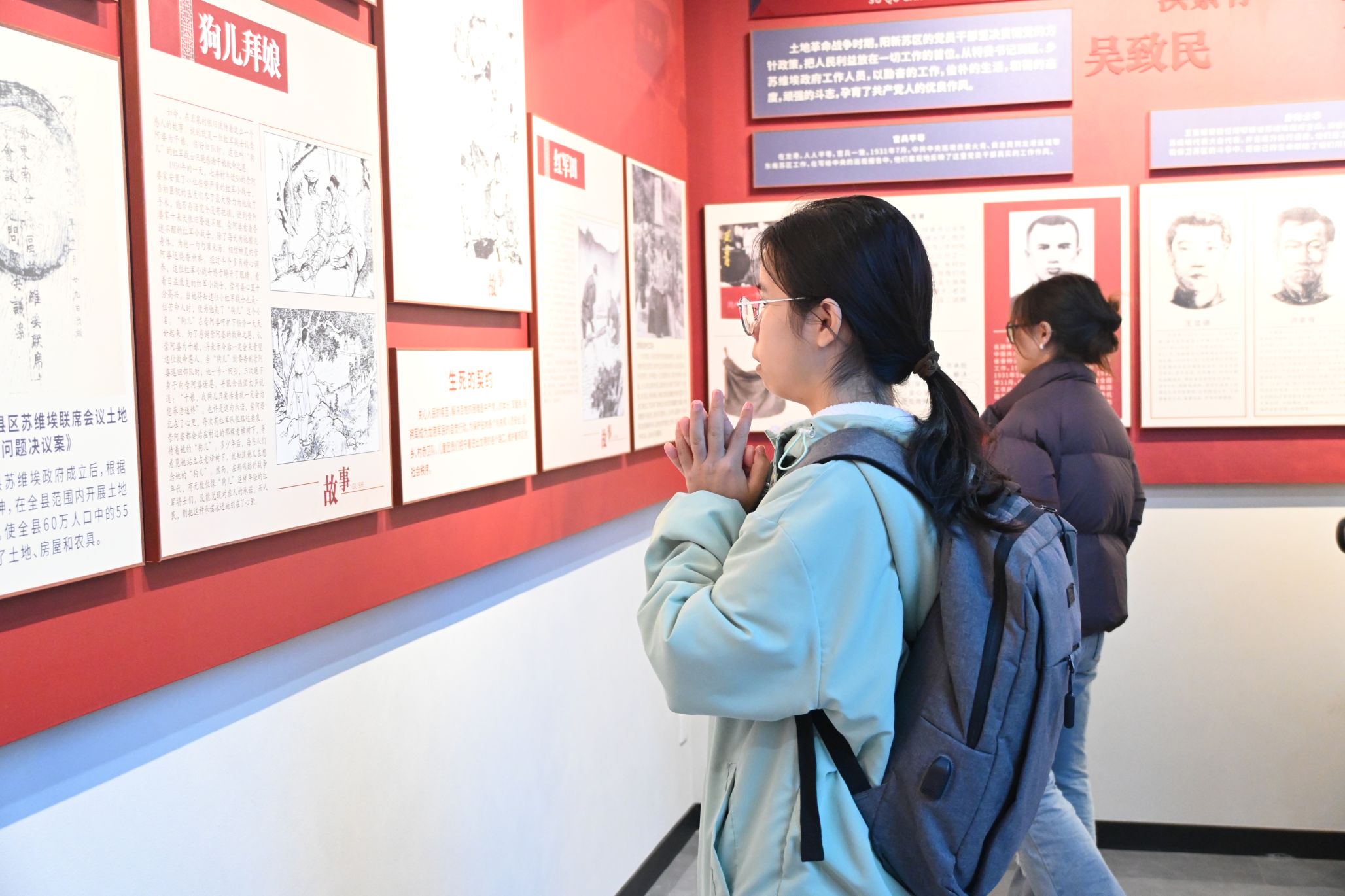 随后,师生们来到了龙港革命历史纪念馆。纪念馆内,一幅幅生动的历史画卷徐徐展开,从土地革命战争到抗日战争,再到解放战争,龙港作为鄂东南革命根据地的中心区域,见证了无数革命先烈的英勇事迹。同学们认真聆听讲解员的解说,仔细观看展品,不时驻足沉思,仿佛穿越时空,回到了那段激情燃烧的岁月。特别是当讲解员讲到红军副团长董自羊在攻打玉林山战斗中受伤后,因没有麻药,让医生直接用锯锯掉感染部位,仍坚持战斗,直至牺牲在龙港的故事时,同学们无不为之动容,深受感动。