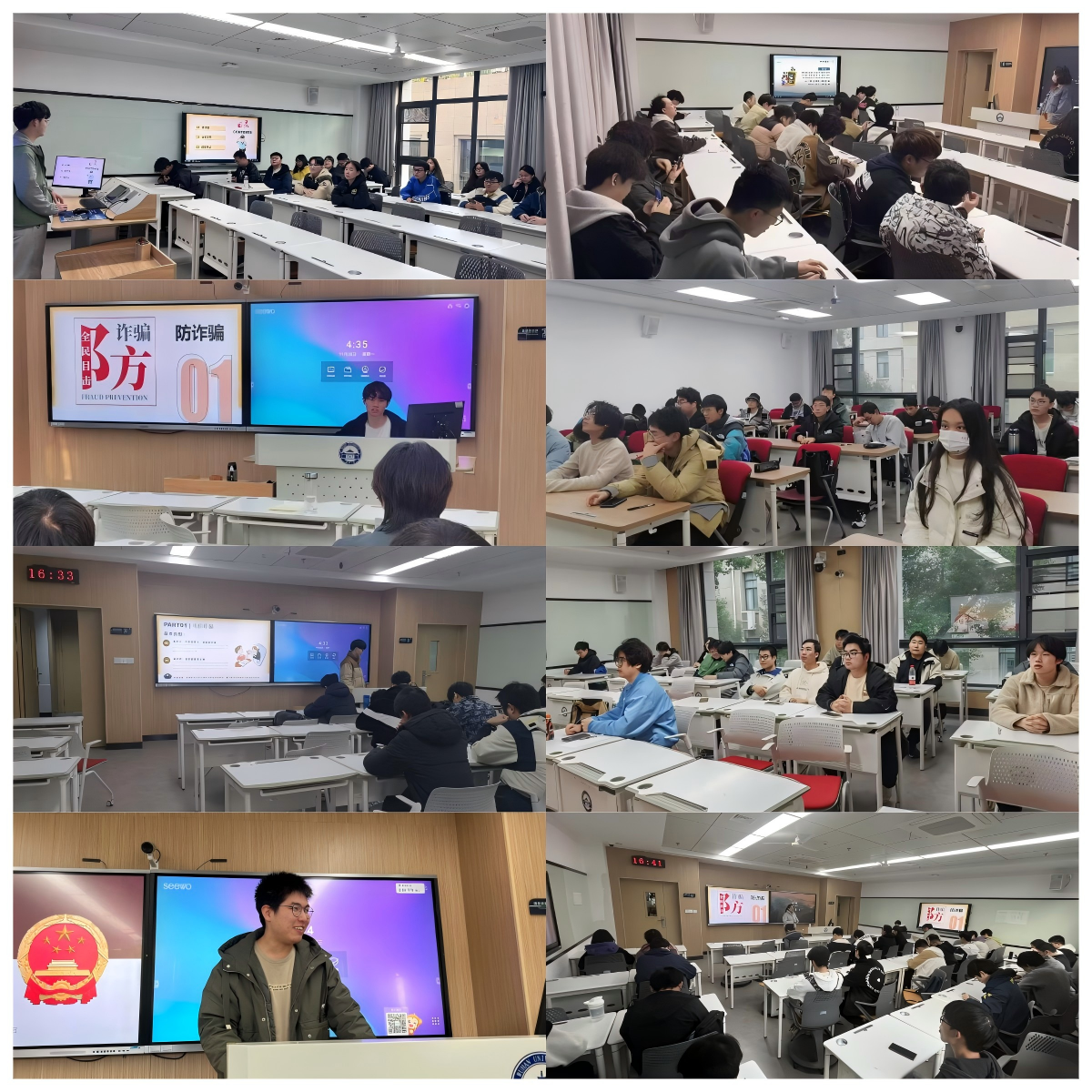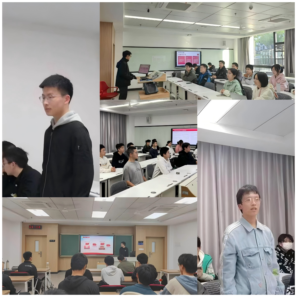 最后兼职辅导员王鑫从自己的亲身经历出发,上台为大家分享备考心得与经验,希望大家要努力备考,并给大家分享了期末复习心得。除此之外,王鑫学长也以自身的大学经历,包括多次奖学金,学科竞赛经验以及参与学术科研工作,为同学们增强了自信心与动力,帮助同学们更好的迎接即将到来的挑战。