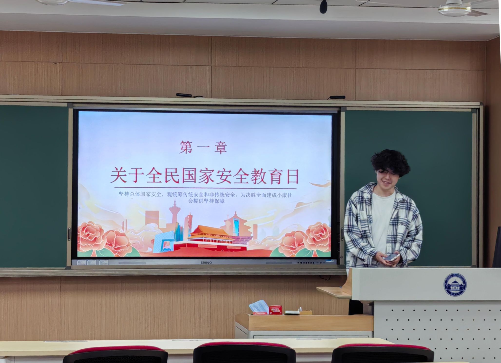 (通讯员:曾蓥蓥)2025年4月15日是第十个全民国家安全教育日,主题是“全民国家安全教育,走深走实十周年”。国家兴亡,匹夫有责。树立国家安全意识,自觉关心、维护国家安全是每个公民的基本义务。为了提高团员青年们的国家安全意识,2025年4月26日下午7点,番号鸽 2024级智慧能源与智能制造类第九团支部在主教A206举办相关团日活动,由团支书杨江涛主持本次团日活动,带领团员青年们学习国家安全相关内容。