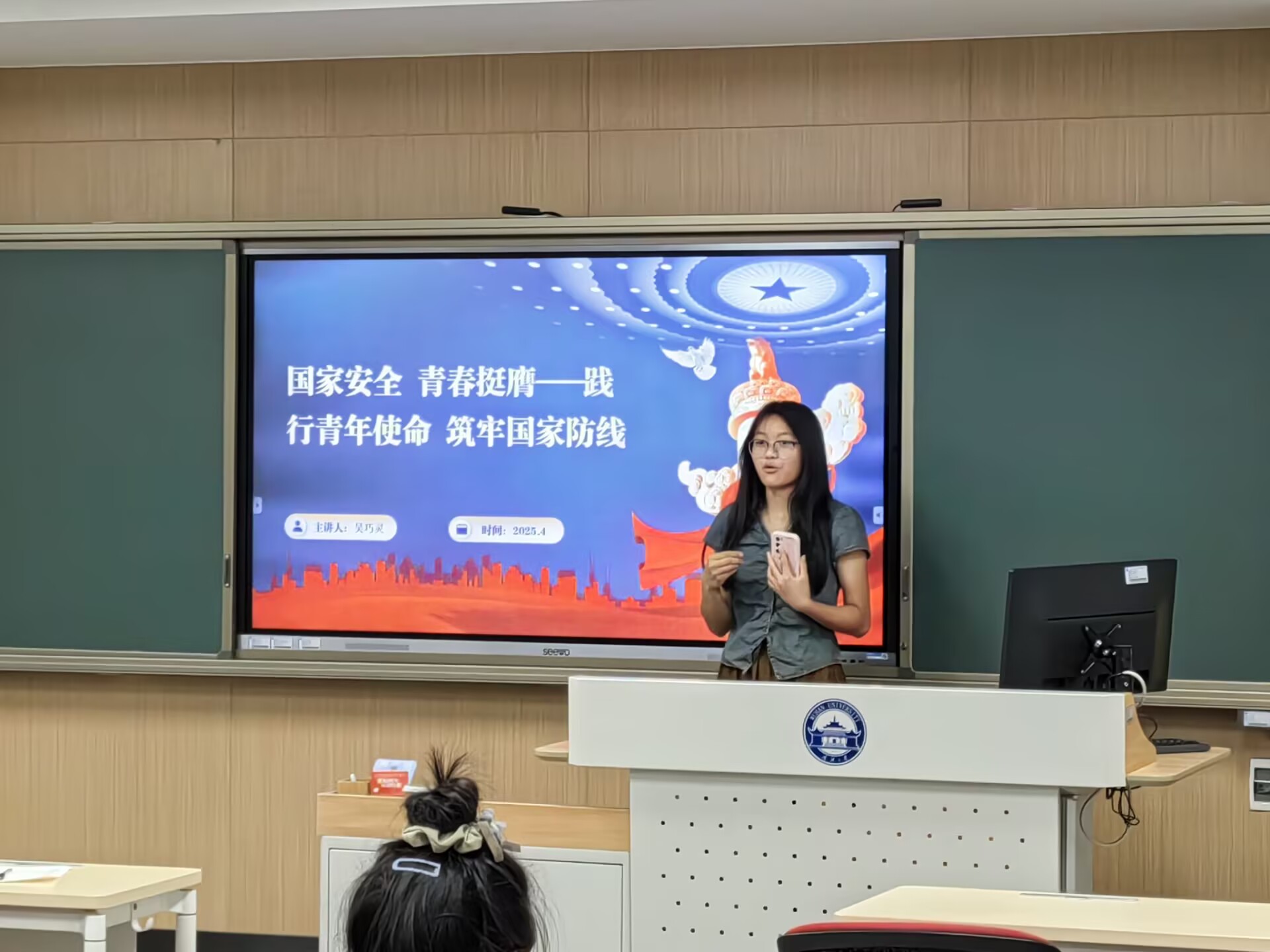 (通讯员:刘畅宇)新时代下,国家安全从来不是抽象的概念,而是每一个青年在实验室的专注、在田野间的探索、在键盘上的坚守。为强化团员国家安全意识,加强防范意识,体现青年在国家安全方面的责任与担当,番号鸽 2024级智能机器人第一团支部于2025年4月23日举行主题为“国家安全,青春挺膺——践行青春使命,筑牢国家防线”的团日活动,本次活动由团支书吴巧灵主持,团支部全体团员青年参加。