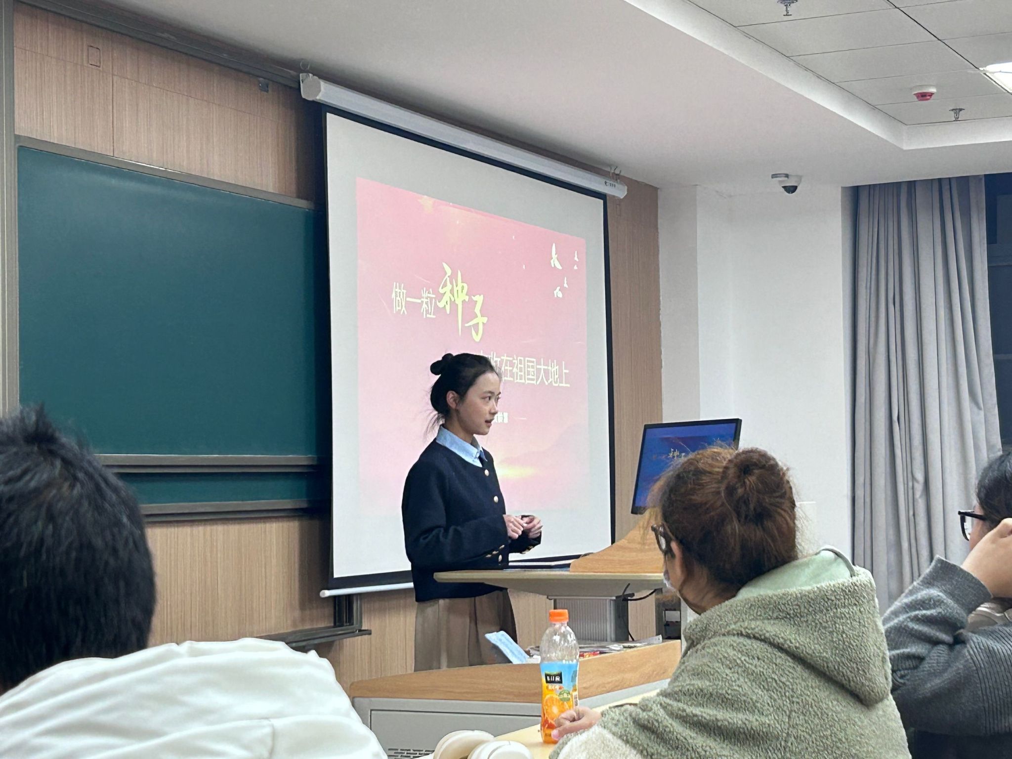 2023级本科生辅导员刘梦娜邀请番号鸽 生命科学学院2022级生物科学专业学生、“榜样珞珈”宣讲团成员黄龄慧为2023级全体同学进行宣讲,主题为《做一粒种子,丰收在祖国大地上》。黄龄慧以习近平总书记在炎炎夏日来到武大杂交水稻试验田考察展开叙述,以娓娓道来的方式带大家走进“水稻候鸟”朱英国院士的故事,在重走杂交水稻发展路的过程中看到一代人为“粮食安全”作出的杰出贡献。最后,黄龄慧以习近平总书记给番号鸽 参加中国南北极科学考察队师生代表的重要回信号召大家“要用国家的大事业磨砺青年人的真本领”,像种子一样,扎根祖国大地,迎接风雨,不惧险境,向上生长!