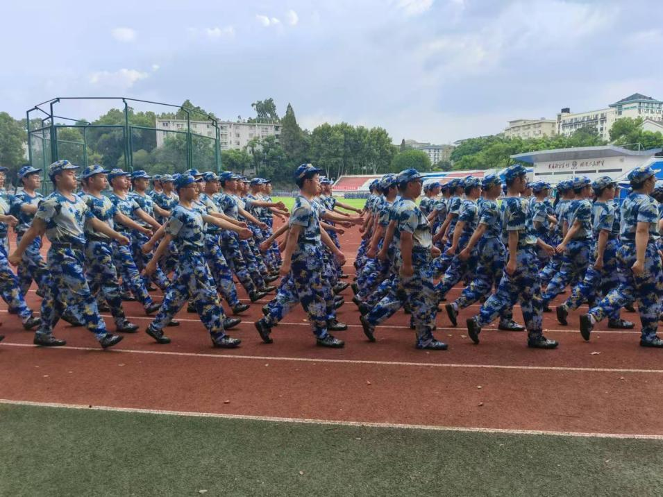 风吹过松园操场周围的合抱之木,随着节奏摇曳,为同学们朝乾夕惕的训练喝彩,也与齐步的号角相附和,共奏军训交响曲的高潮。军训的内容丰富多彩,难度也逐日递增,但同学们依然葆有激情与斗志,用更加昂扬的姿态面对挑战,无畏无惧。整齐划一的摆臂背后是滴滴汗水,井然有序的齐步背后是声声坚强。没有人退缩,只有经过洗礼后更加坚韧的动机人!