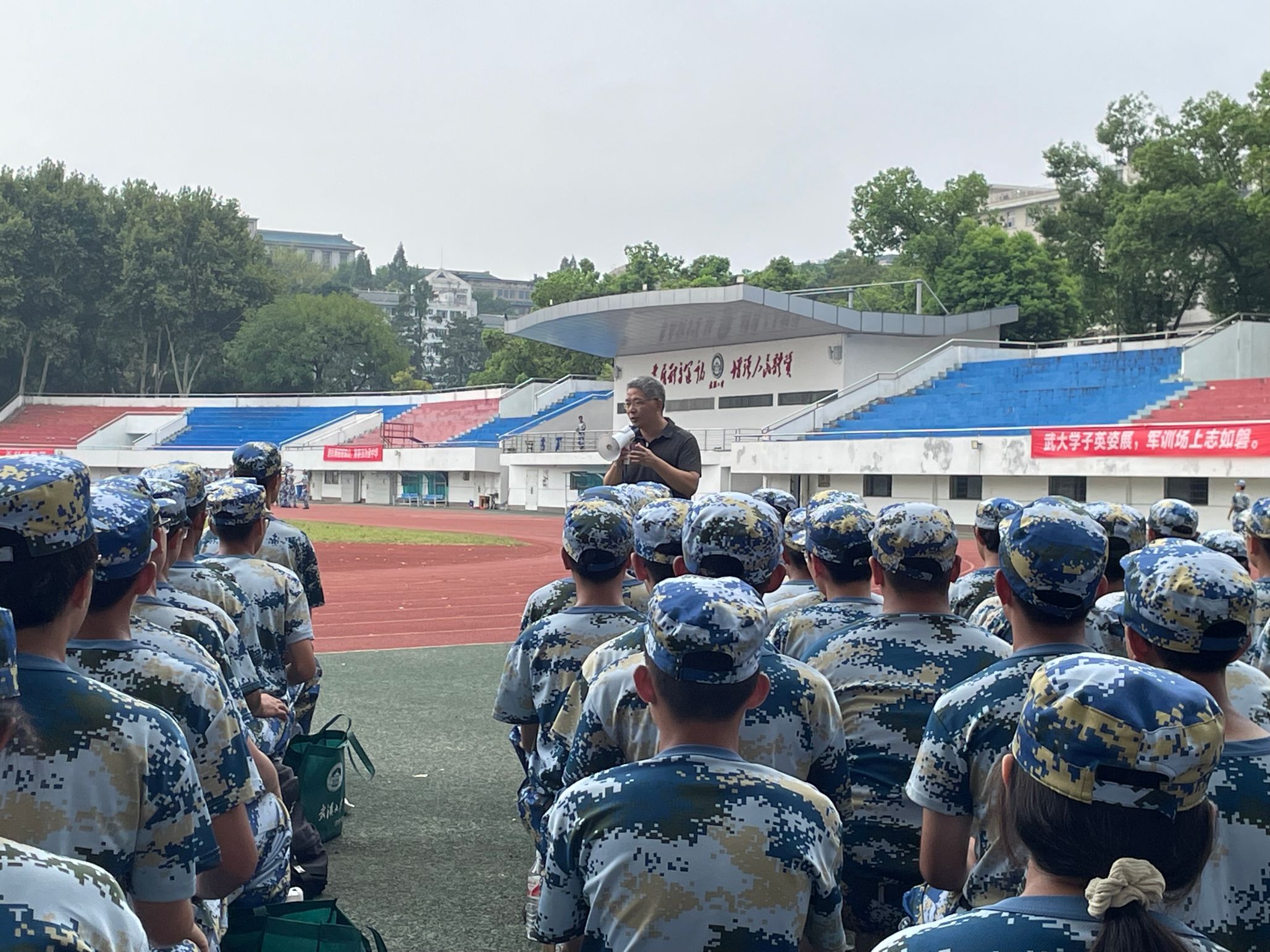 随后,匡书记对同学们进行慰问。他首先肯定了同学们在军训中的优异表现,对同学们在烈日下依然坚持训练、不畏艰难的精神给予了高度评价,并深情地说:“大家军训都很辛苦,但正是这样的经历,能够磨砺你们的意志,锻造你们的品格。”匡书记指出:“我们要向教官们学习,学习他们的为人处世,学习他们严谨的作风、坚韧的意志和无私的奉献精神。同时,也要把军训当作一次强身健体的机会,为未来的学习和生活打下坚实的基础。”