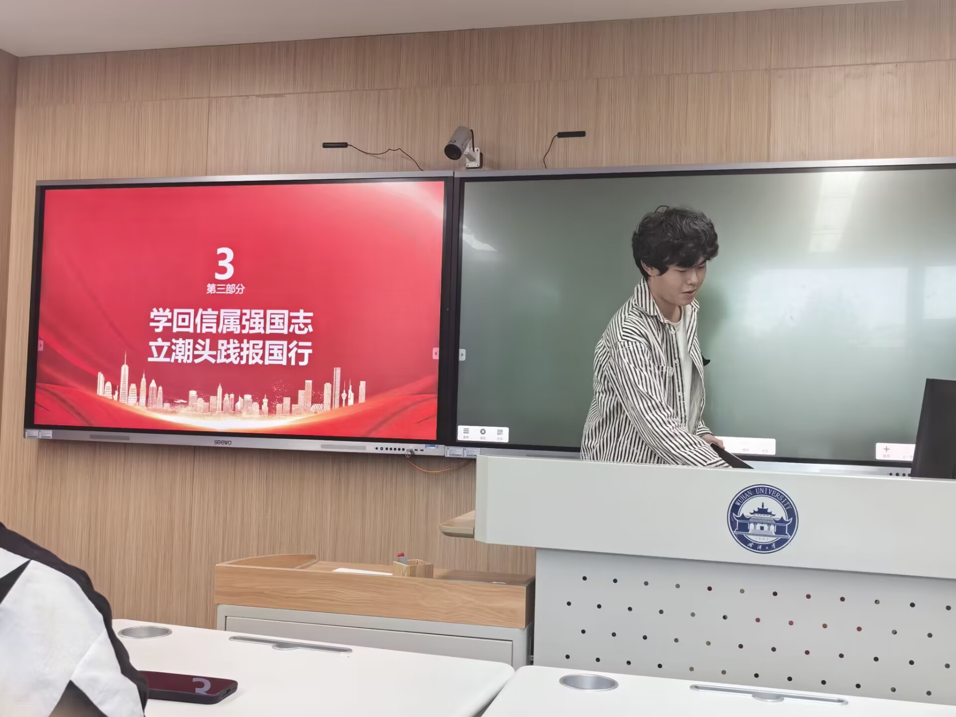 最后,杨江涛对本次活动进行总结,向全体参会团员发起号召,号召团员青年们关注社会热点,以自身专业所长服务奉献于祖国的发展和社会的进步,做不辜负民族使命的新时代青年。