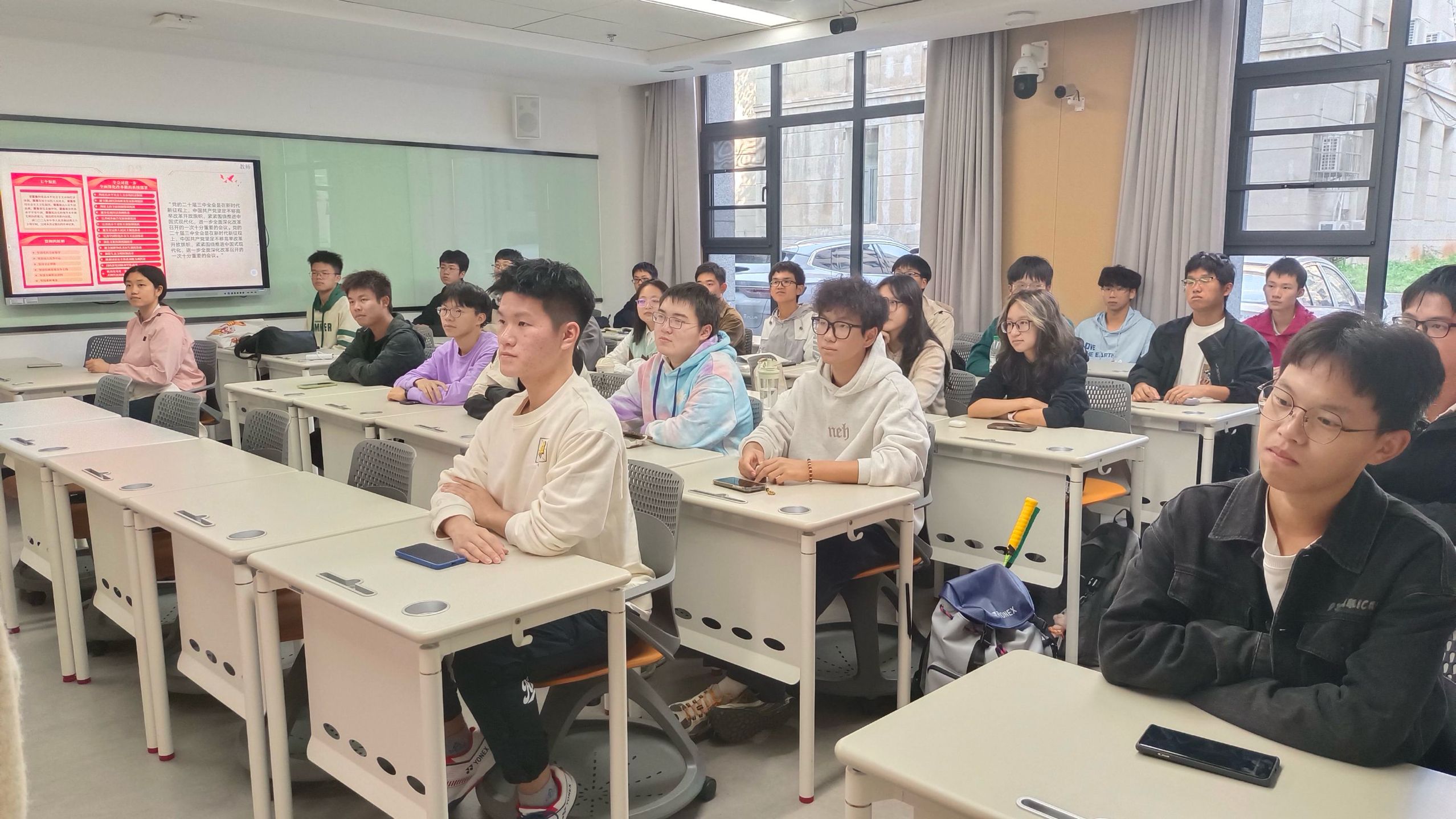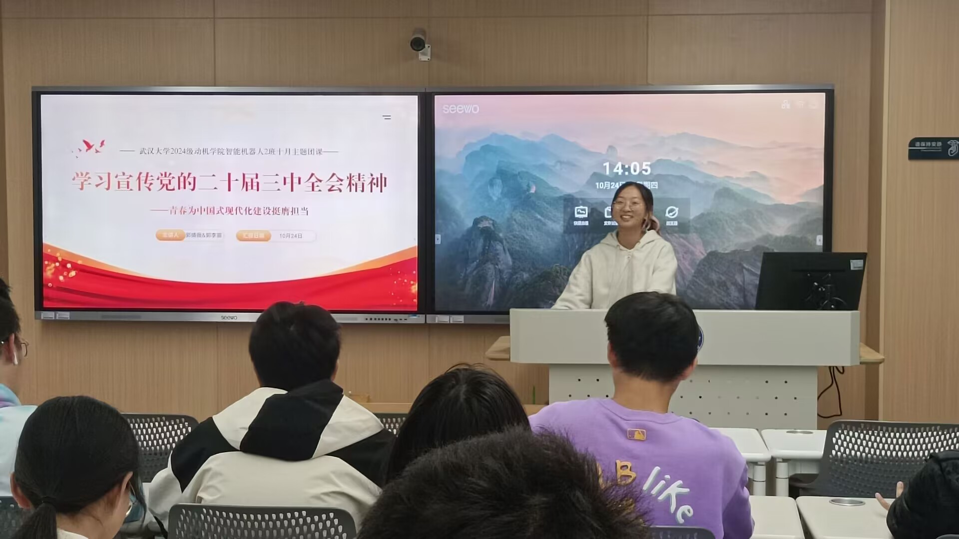 (通讯员:唐行航)为有牺牲多壮志,敢教日月换新天。中国共产党第二十届中央委员会第三次全体会议于2024年7月15日至18日在北京举行。会议审议通过了《中共中央关于进一步全面深化改革、推进中国式现代化的决定》,号召全党全军全国各族人民要更加紧密地团结在以习近平同志为核心的党中央周围,为全面建成社会主义现代化强国、实现第二个百年奋斗目标,以中国式现代化全面推进中华民族伟大复兴而努力奋斗!为了深入学习贯彻会议精神,2024级智能机器人第二团支部于2024年10月24日在工学部主教A113举办相关主题团日活动,团支书郭婧薇、组织委员郭李宸主持了此次活动,全体团员出席并共同学习了全会精神。