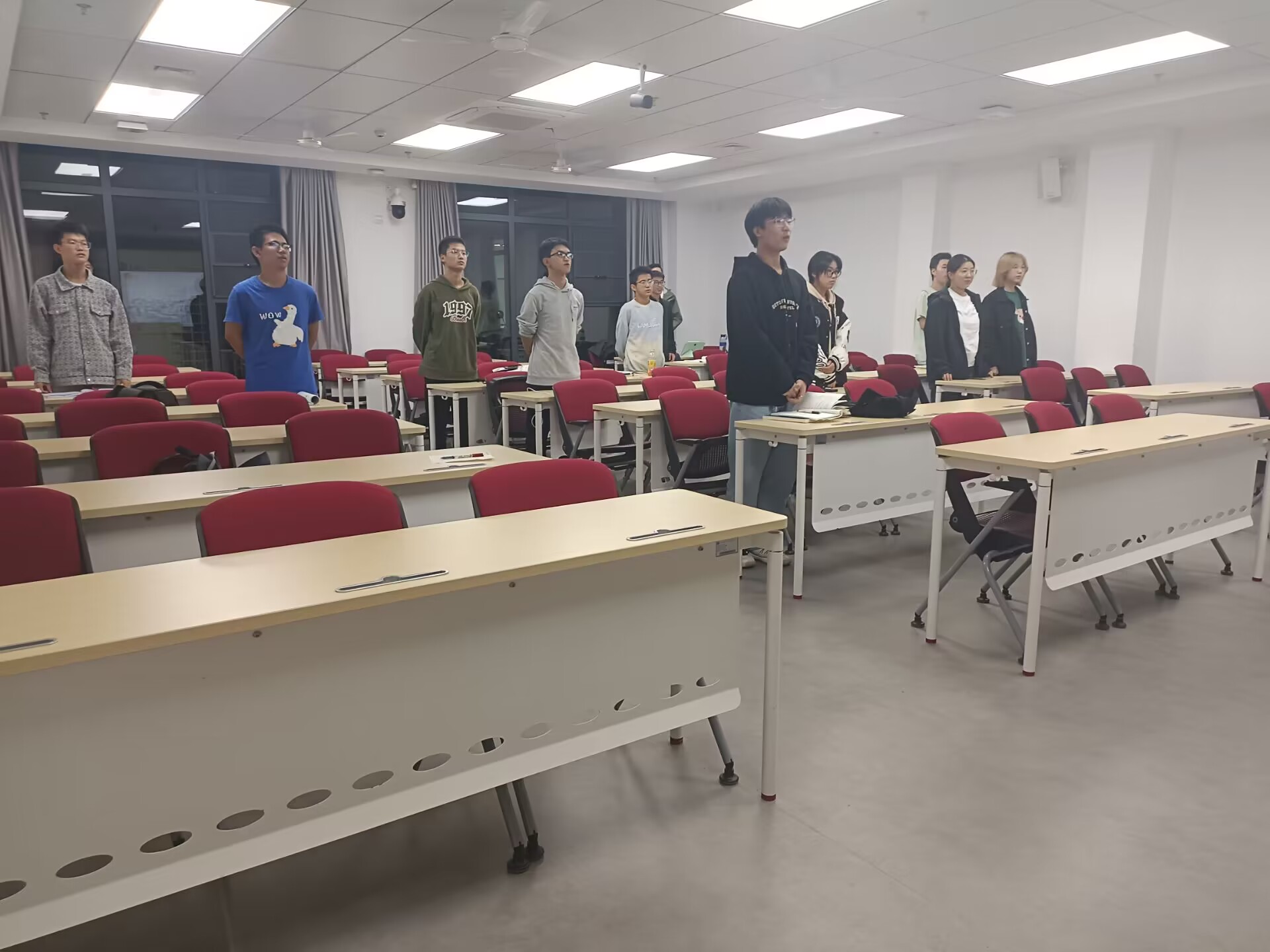 接着,来到了歌唱团歌的环节。随着音乐缓缓响起,全体共青团员起立,目光坚定,神情肃穆,共同唱响那激昂的团歌。歌声中,每一个音符都承载着团员们对团的热爱与敬仰,每一个节拍都传递着青春的活力与激情。歌声回荡在教室内,也回荡在团员们的心中。它像一股无形的力量,将在场的团员青年们紧紧凝聚在一起,让他们感受到了团组织力量,激励共青团员们共同为团的事业去奋斗、去拼搏。