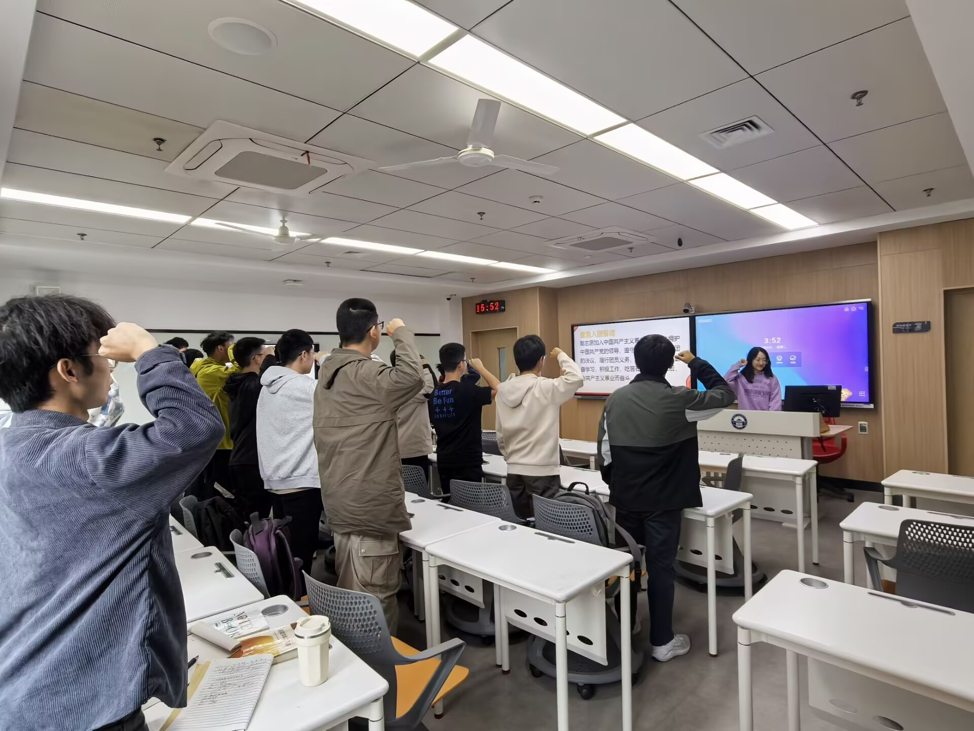 随后,熊欣瑶引领全体团员青年深入学习习近平总书记的重要回信精神。集体朗读的回响、生动解读的视频及小组讨论的热情,如春风细雨般滋养着每位青年的心。随后的分享会上,围绕“强国故事”,团员们分享了身边感人的爱国事迹与青年榜样,这些故事点燃了大家的报国热情,坚定了为国家、民族、人民奋斗的决心。尽管道路各异,但团员青年们都朝着“学习回信,树立强国志向,勇立潮头,践行报国行动”的目标坚定前行。