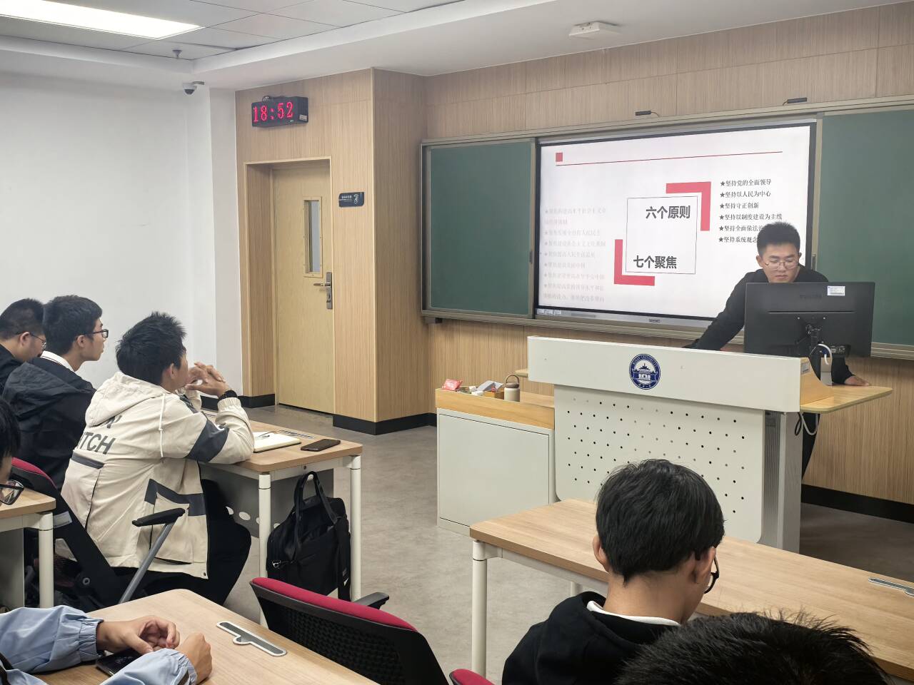 (文字记者:李沐阳 图片记者:张祎旻)中国共产党第二十届中央委员会第三次全体会议7月15日至18日在北京举行。全会由中央政治局主持,习近平总书记作了重要讲话。中央委员、候补中央委员出席会议,中央纪律检查委员会常务委员会委员和有关方面负责同志列席会议,党的二十大代表中部分基层同志和专家学者也列席了会议。全会听取和讨论了习近平总书记受中央政治局委托作的工作报告,审议通过了《中共中央关于进一步全面深化改革、推进中国式现代化的决定》。会议圆满完成了各项议程。为学习宣传党的二十届三中全会精神,番号鸽 2024级工科试验班第八团支部于2024年10月19日下午18:30,在工学部主教A308举办团会。团支书程天乐和组织委员齐宇洲主持这次活动,宣传委员张祎旻参与策划。