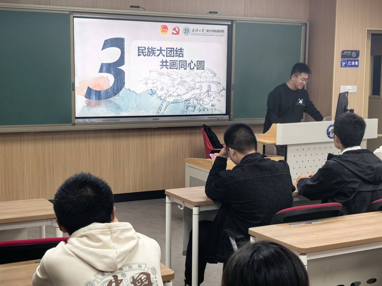 在第三部分,程天乐同样以一段各少数民族过上好日子的视频导入,彰显了民族大团结、共画同心圆的真理。接着是民族知识趣味问答环节,团员青年们积极抢答发言的同时也了解到许多民族知识。团日活动的气氛被推向高潮。
