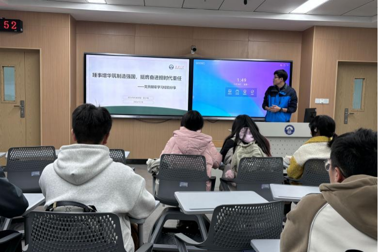 优秀党员王震同2024级智能机器人第一团支部的团员青年们分享了他的大学生活,解答了新生们关于保研入党和大学生活的疑问。他以“道法三千六百门,人人各执一苗根”为主题,嘱托团员青年们保研要量力而行,考公要提前布局并给出了大学里面不会后悔的三条建议。王震的分享,让不少同学都有许多感悟与心得体会,无疑为团员青年们在后面的大学生活中找到适合自己的一条路提供了切实有效的帮助。