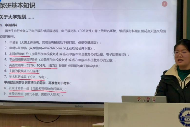 优秀党员刘佳伶走进2024级智能机器人第二团支部,同团员青年们做了关于大学保研的经验分享。首先刘佳伶通过现身说法,讲述了其自大一以来的学习过程与心得体会,重点强调了专业学习的重要性;其次她指明了大学职业生涯规划的重要性,并向青年团员们介绍了保研过程的录取规则,并着重强调应把握好优先级,鼓舞团员青年们在大学生活中勤勉学习、积极进取。