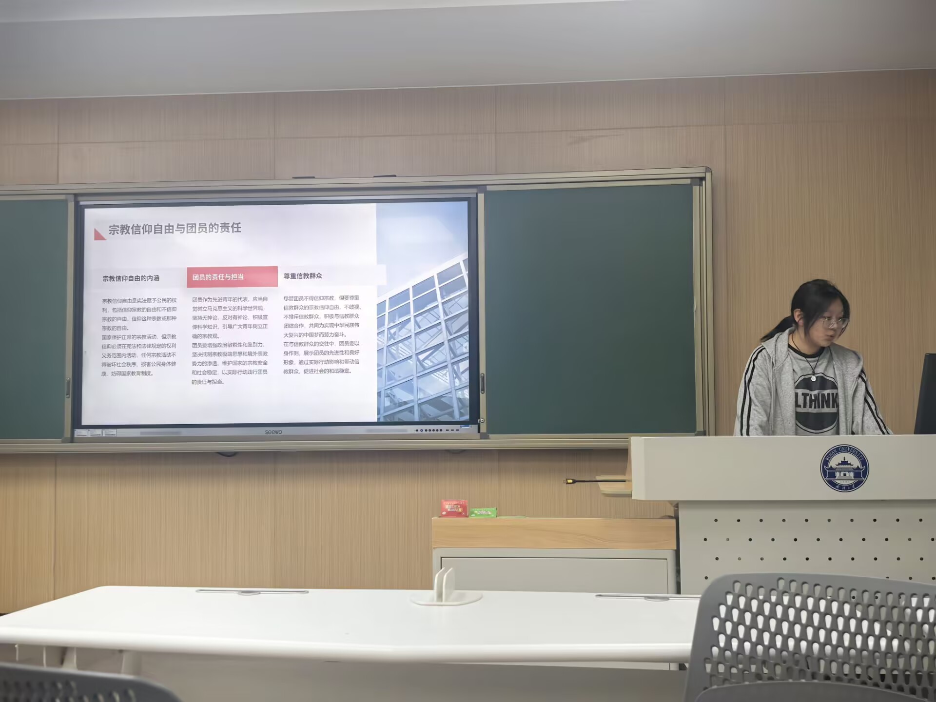 (文字记者:李一晨 图片记者:张祎旻)2025年3月5日是第62个“学雷锋纪念日”。习近平总书记多次强调要弘扬雷锋精神,倡导奉献、友爱、互助、进步的志愿精神,让学雷锋活动融入日常、化作经常,让雷锋精神在新时代绽放更加璀璨的光芒。为学习党的二十届三中全会精神,帮助团员青年们树立正确的宗教观,领悟雷锋精神重要性,番号鸽 2024级工科试验班第八团支部于2025年3月22日20:00,在工学部主教A217举办主题团会。团支书程天乐和团员青年吴婉蓉主持这次活动。