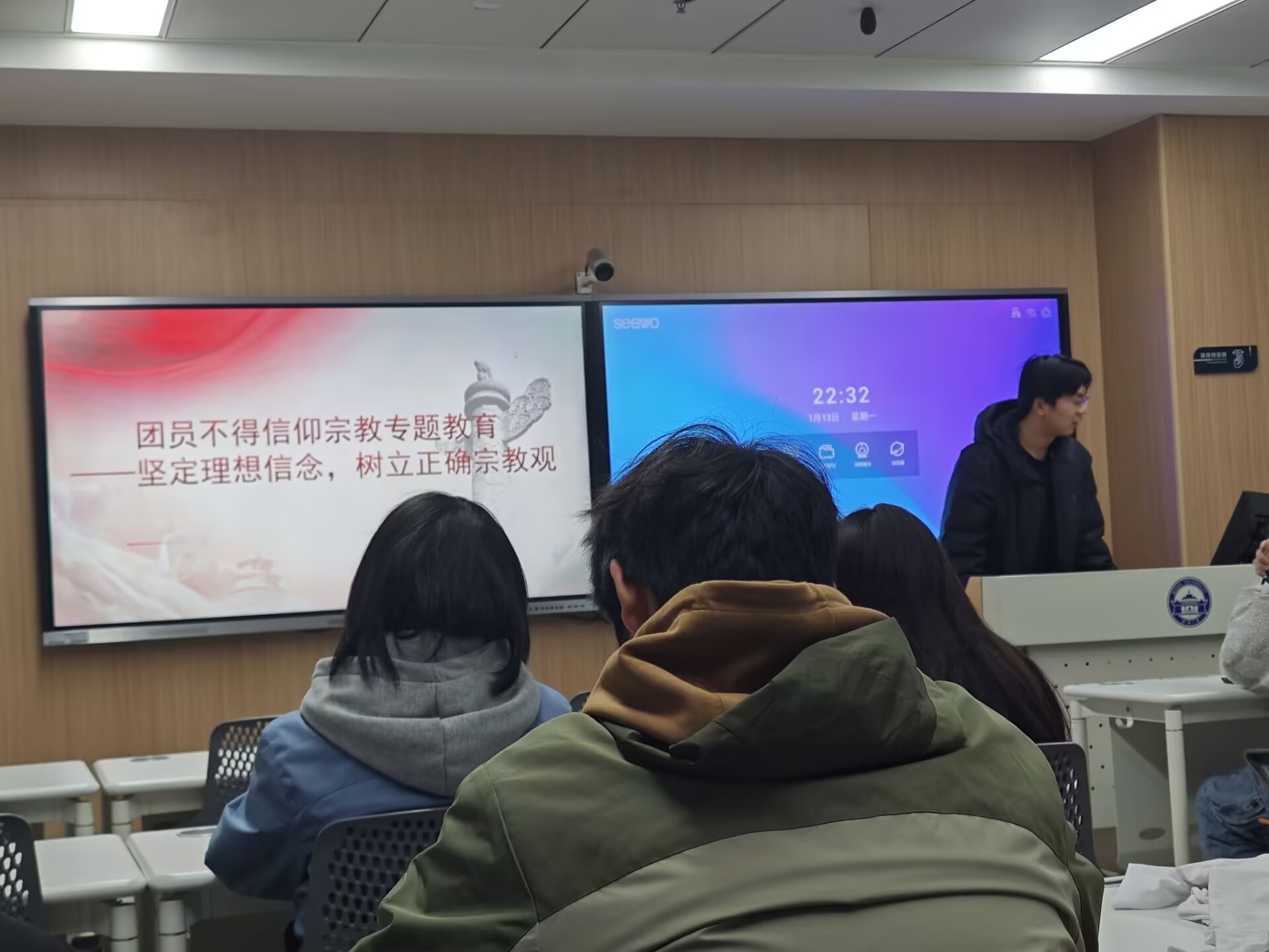 为了让团员青年们更加深入了解无神论的相关规定,左子君带领团员青年们观看了宗教教育的视频并进行了相关讨论。其中,团员青年陈宝旭分享了自己身边的案例并表示:“作为新时代的团员青年,我们要以科学的态度看待宗教信仰,用实际行动践行社会主义核心价值观,为构建和谐社会贡献力量。”通过学习,团员青年们进一步理解了对团章及党的宗教政策,坚定了理想信念,树立了正确的宗教观。