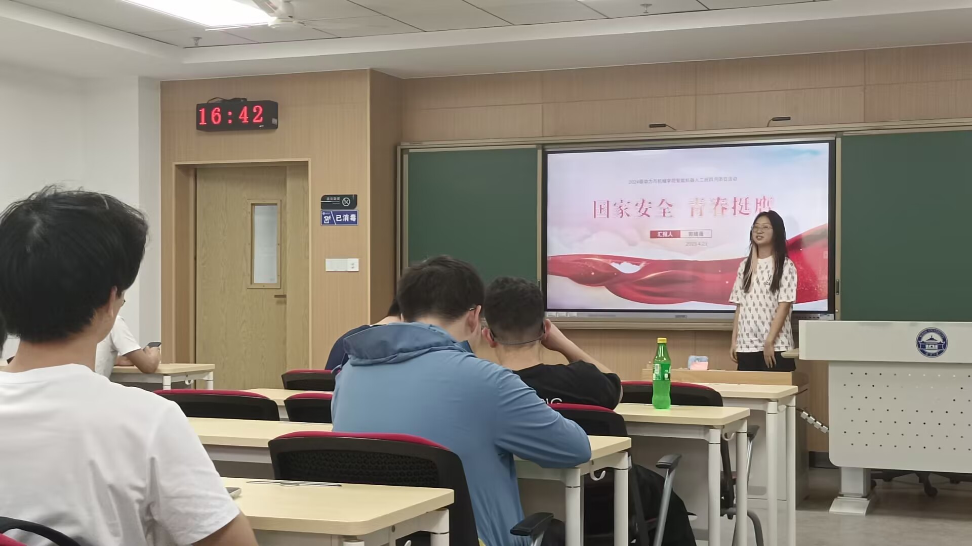 (通讯员:唐行航)国家安全和社会稳定是改革发展的前提。习近平总书记强调:“国家安全是安邦定国的重要基石,维护国家安全是全国各族人民根本利益所在。”必须坚定不移贯彻总体国家安全观,把国家安全贯彻党和国家工作各方面,全过程。为了深入了解国家安全,贯彻总体国家安全观,2024级智能机器人第二团支部于2025年4月21日在工学部主教A209举办主题团日活动,团支书郭婧薇主持此次活动,团支部全体团员青年共同学习了国家安全相关知识。