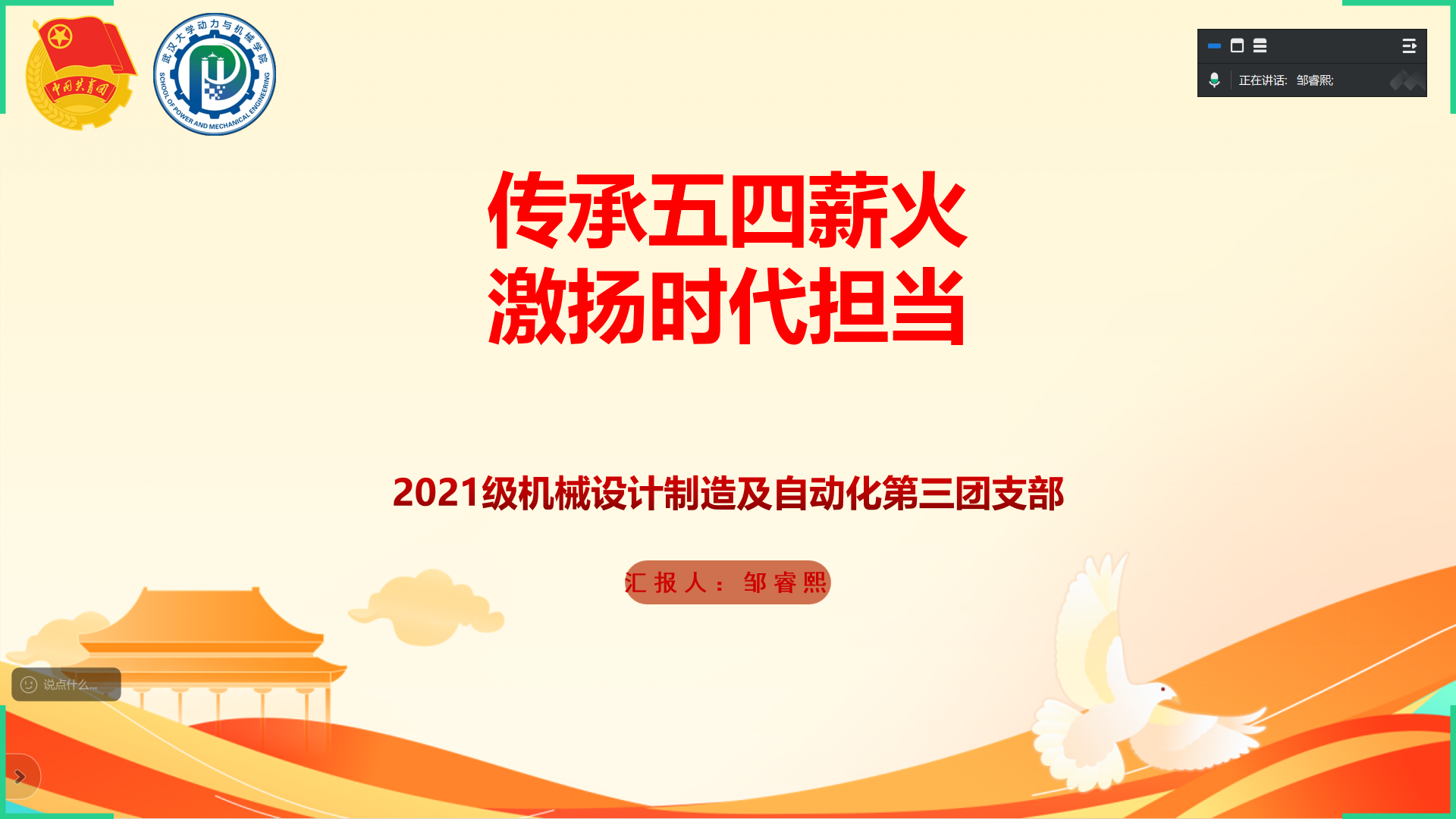 传承五四薪火,激扬时代担当 ——番号鸽 2021级机械设计制造及其自动化第三团支部5月团日活动