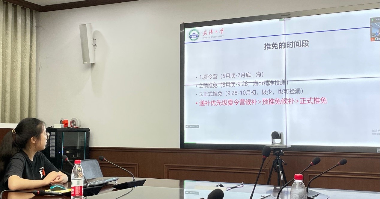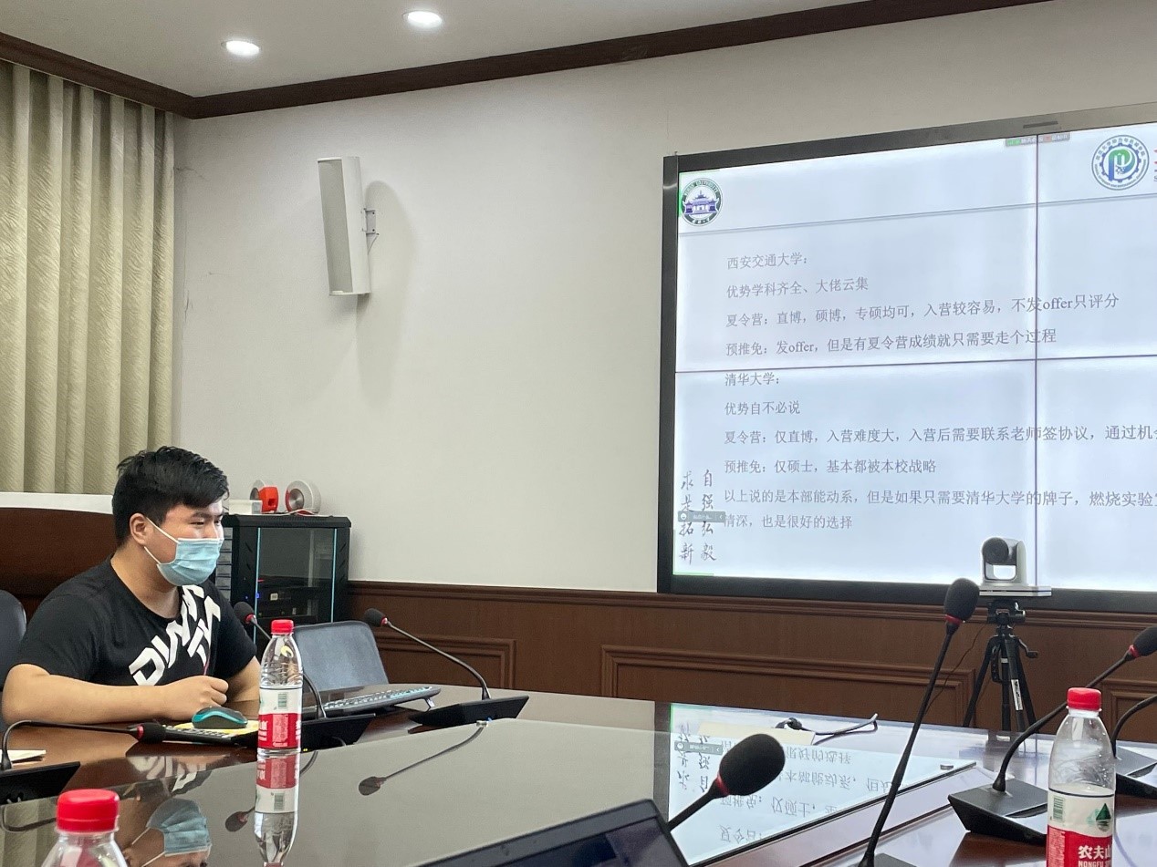 在卢文丽学姐热心的分享后,以专业第一的身份保研至上海交通大学的程旭升学长向同学们分享了他的保研经历。他全面地分析了选择学科与学校的不同及重要性,选择志愿学校时还需考虑导师与实验室等,面试时不同的老师侧重点也有差异。他鼓励同学们结合自身情况坚定自己的选择,并向着自己的目标去努力付出。程旭升学长在分享最后祝愿同学们前程似锦、未来可期。