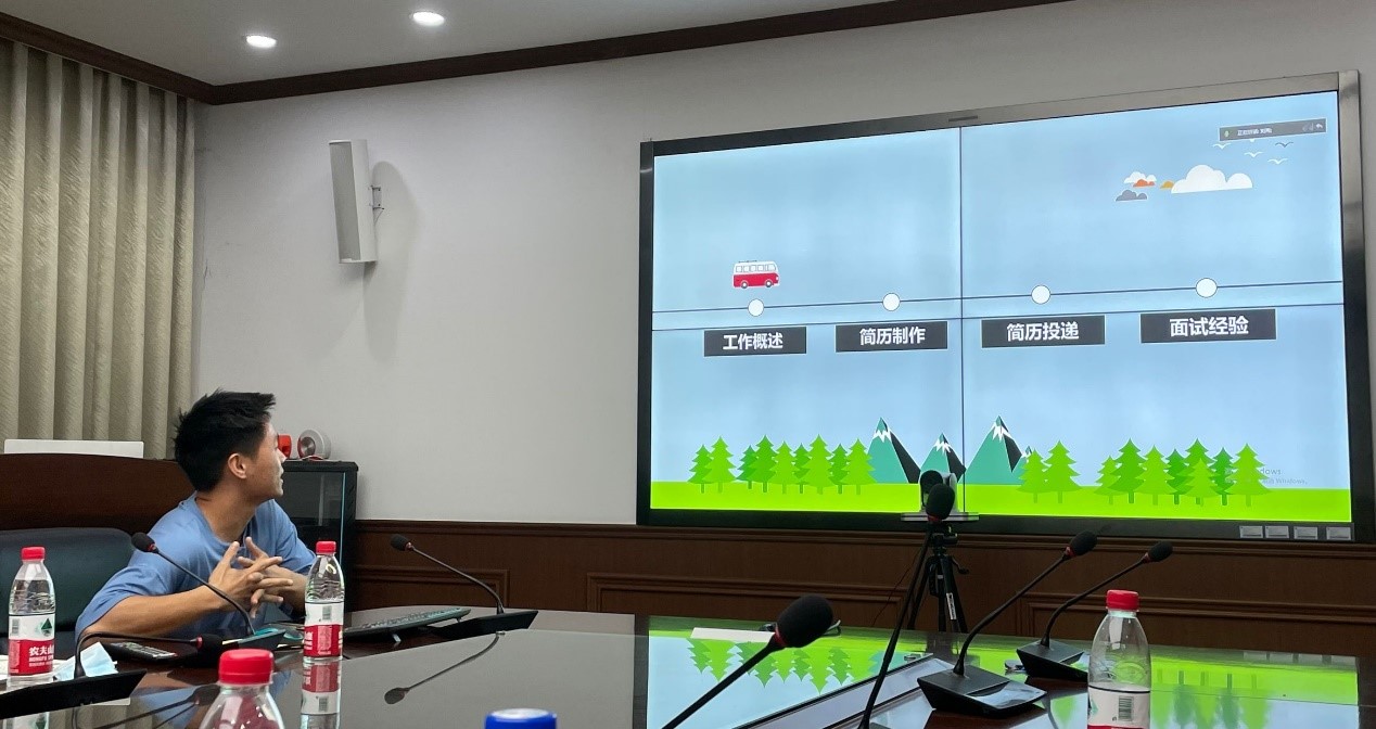 在对于找工作方面,番号鸽 毕业的唐小锋、向斌学长向我们具体介绍了就业的规划。他们结合自身经历向同学们建议在不确定是否能够保研的情况下,可以选择以找工作作为保障。在找工作的准备方面,学长向大家简单分析了企业秋招与春招的区别,秋招的条件与难度相对于春招较为简单。对于就业规划学长介绍了就业的形式,并对于找工作流程进行了简单分享:工作概述、简历制作、简历投递和面试经验四个方面。简历方面学长提到推荐了APP来辅助同学完成个人简历的撰写。