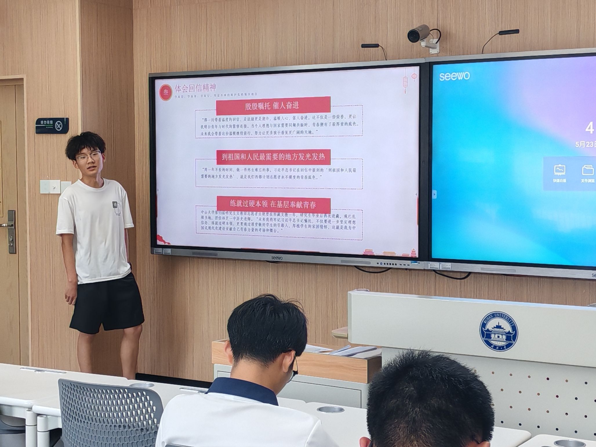 在活动的第一部分,团支书栗振杰带领团员青年们开展了 “学习回信精神,绽放奉献华光” 的专题学习。团员青年们怀着崇敬与热忱,共同学习了习近平总书记给新疆阿图什市哈拉峻乡谢依特小学戍边支教西部计划志愿者服务队队员的回信内容。习近平总书记在回信中,对志愿者们响应党的号召,毅然奔赴西部边疆地区教书育人的举动予以了高度肯定。这些志愿者们在促进当地教育事业发展、民族团结进步、兴边富民和稳边固边中发挥了积极作用。同时,习近平总书记赞扬了越来越多年轻人到西部、乡村、基层志愿服务所展现的新时代中国青年昂扬向上的精神风貌和强国有我的责任担当。他们远离繁华都市,无惧艰苦环境,用自己的青春和汗水,在祖国的广袤大地上书写着无私奉献的壮丽篇章。习近平总书记还在回信中对广大青年提出了殷切希望,希望广大青年坚定理想信念,厚植家国情怀,练就过硬本领,发扬奋斗精神,到祖国和人民最需要的地方发光发热,为中国式现代化建设贡献青春力量。