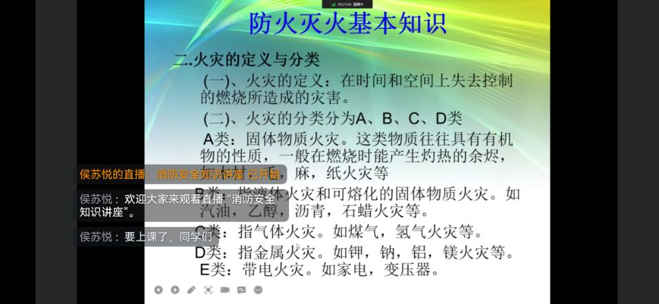患生于所忽,祸发于细微。侯苏悦老师以一则生动有趣的动画片开启消防安全知识课堂,动画中涉及家庭常见安全隐患,例如热水器的使用隐患、煤气泄露问题等,特别是对火灾进行了详细讲解,寓教于乐,极大增强课堂的趣味性和孩子们的积极性,提高课堂讲解的有效率。而后,侯老师悉心讲解火灾的理论知识,如火灾的定义与分类等,普及防火灭火基本知识,特别是对一些细节部分进行阐述,从同学们熟悉的场景出发,增强了科普的生动性与真实性。此外,老师结合暑期实际状况,为同学们讲解溺水方面知识,并提醒孩子们暑期切勿私自下河游泳,珍爱生命。