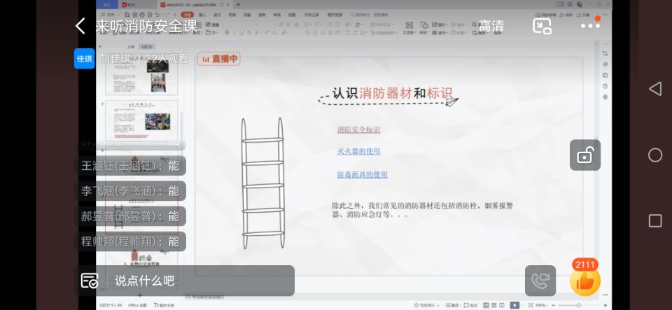安全意识就像安全带,系好它才能保护自己。胡佳琪老师对消防安全措施方面进行重点讲解,引导孩子们思考,自己在面临火灾等灾害时的做法,指导孩子们沉着冷静,选择正确的逃生方式,让孩子们加深对消防安全措施的理解,防患于未然。此外,胡老师还对部分消防器械和标识进行了展示与解释,鼓励孩子们多学习、多了解,增进对消防安全知识的认知,做自己和他人的安全小助手。