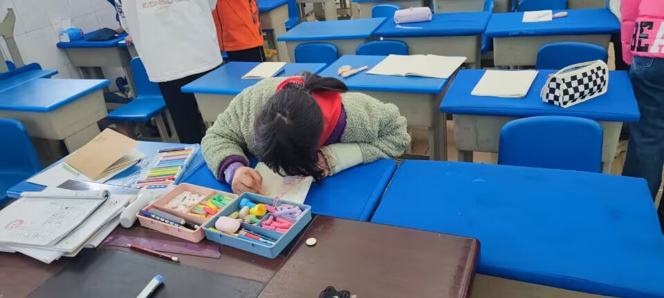 在自习时间,志愿者们很快和同学们成了好朋友,和他们一起锻炼、聊天,还有给他们辅导功课。