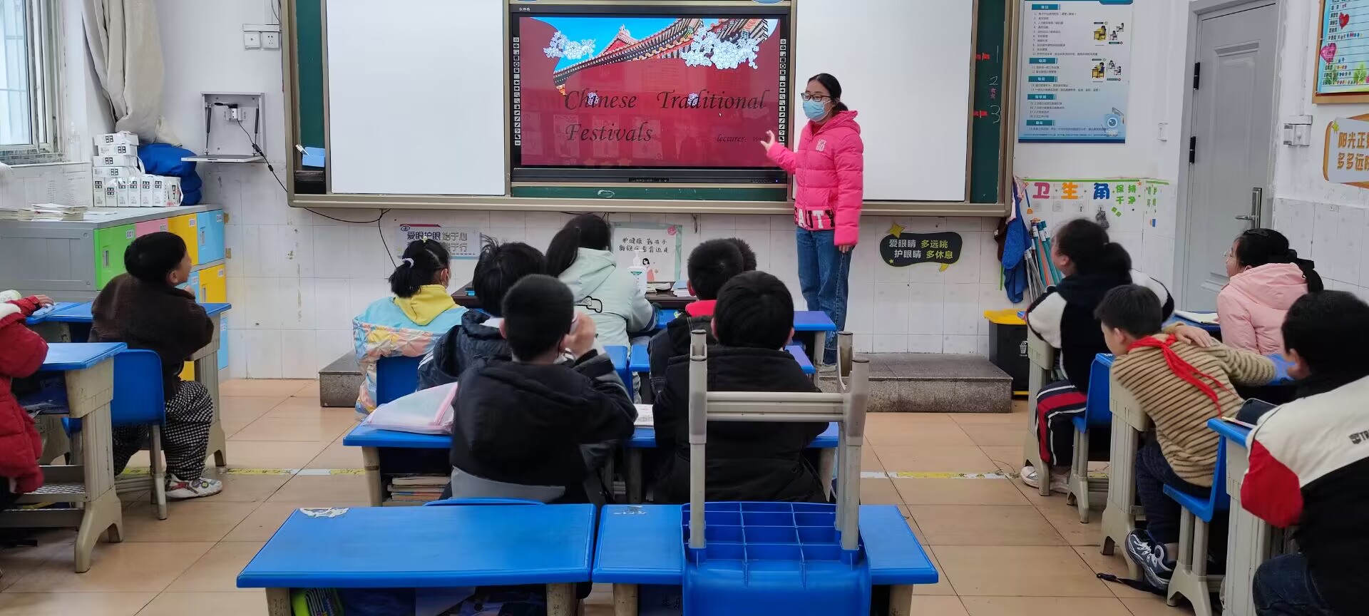 在志愿者确认完学生人数后,便开始了第一堂课,从四到六年级每个年级设置西方文化、阅读分享和科学探究三种课程,志愿者们结合每个年级的学习进度,同时结合我们学院的特色适当拓展,通过制作的PPT和趣味小游戏带动同学们积极思考问题。