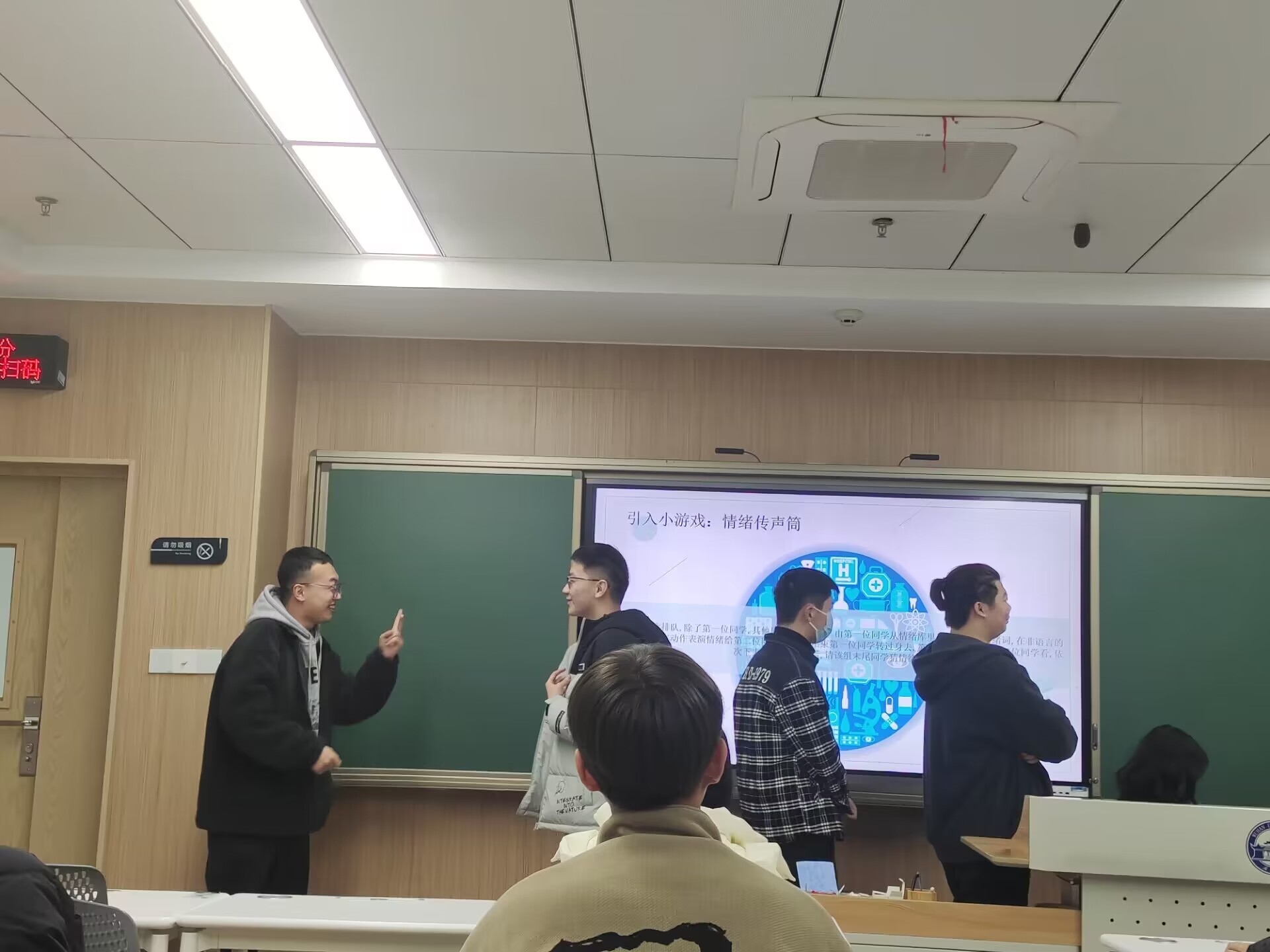 虽然主题相似,但各班各有特色、形式多样。有的班级利用小游戏活跃气氛增加交流,26A班在班会中组织了击鼓传花、你画我猜的小游戏,形式新颖,同学们的心理压力在愉悦的游戏体验中得到缓解;而26B班和27班的同学们以接龙的方式剖析了自己的优缺点,同时听取他人对自己的评价,这种方式有助于每一位同学多方位地认识自己,明确未来的努力方向。有的班级播放相关视频让同学们学习心理健康知识:29班播放了《头脑特工队》片段让大家简要了解情绪的种类;24班组织同学观看心理健康讲座,系统地学习了心理健康知识。此外,28班还进行了一次小小的心理测试,让大家在简洁有趣的题目中了解自己的心理状态;29班为同学们建立了交流平台,鼓励大家互帮互助,进行一场心与心的交流。