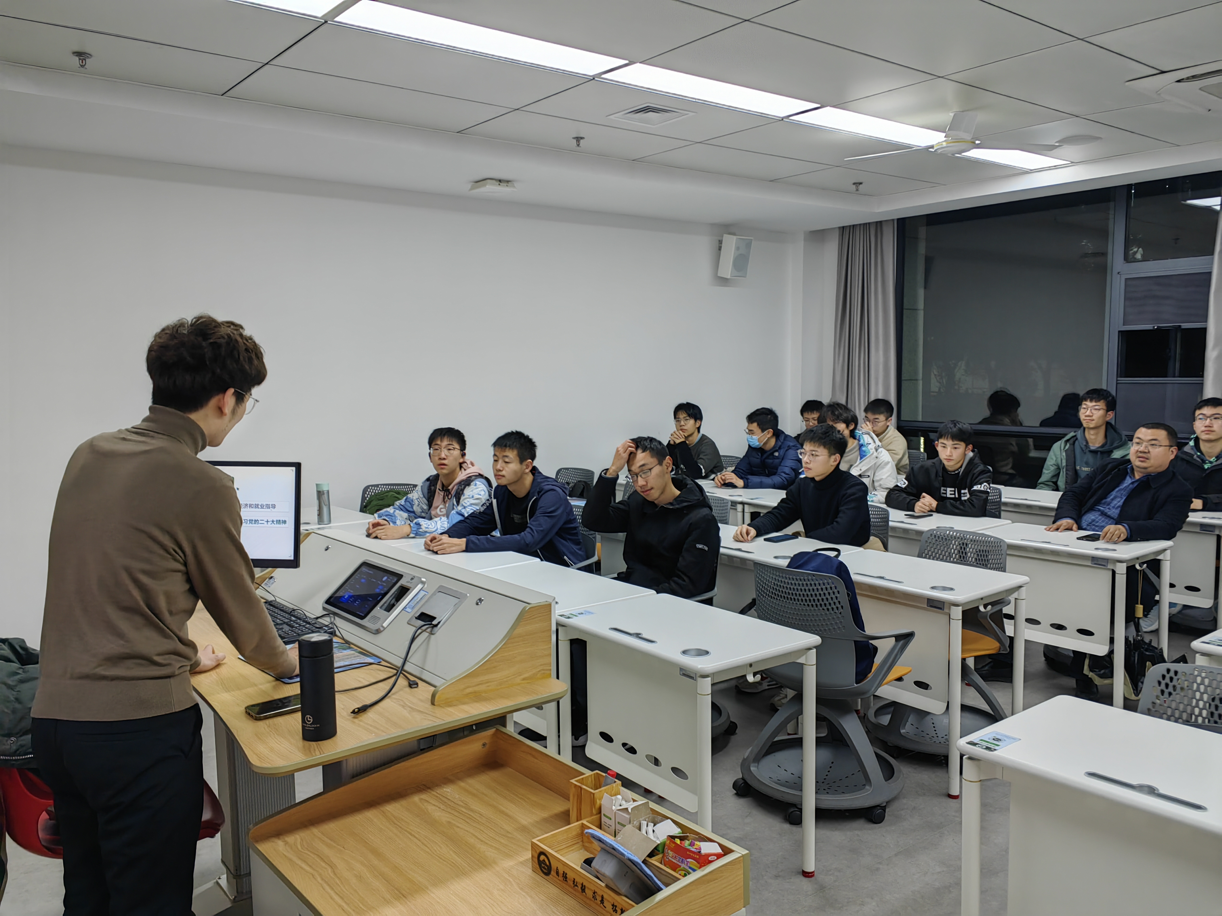 首先,班长周圣喆从“正确看待疫情防控”“经济和就业指导”“重启的校园生活”“学习党的二十大精神”四个方面展开了详细的介绍。向同学科普了xbb病毒的知识以及中国在抗疫中所做出的的重大贡献。尽管离毕业就业还有较长的一段时间,周圣喆简单结合经济形势和就业形势提出就业建议,让同学有更好的方向计划。