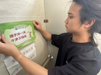 在日常的交流沟通中,部分同学反映一些学生宿舍的卫生间存在不够干净、清洁的现象。鉴于此,6月11日下午,本科机械第一党支部组织了部分毕业生党员在三舍、四舍的卫生间张贴卫生宣传标语,提醒同学们文明如厕,以实际行动践行全心全意为人民服务的宗旨。