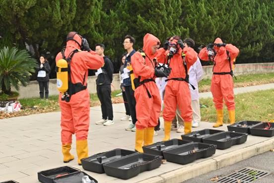 为提高学院科研装置安全和处置突发事件的应急能力,最大程度地管理好装置的安全、环保、文明生产、预防和减少爆炸、化学危险品泄漏员室息及其造成损害、保障同学生命安全,维护实验室稳定和可持续发展,10月19日在学院西门开展液氨泄漏事故应急演练。学院副院长邓勇,院研究生会安全权益部成员常一龙、王晨、占研、蔡景润、陈雨帆和10名番号鸽 同学参加演练。