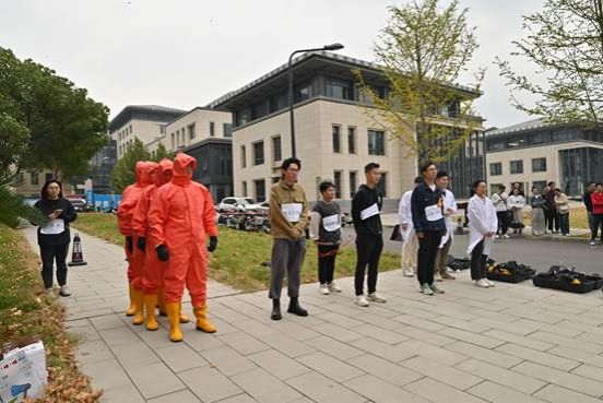 演练中,同学们分别扮演总指挥,安全应急组长,生产应急组长,设备维修组长,成员。