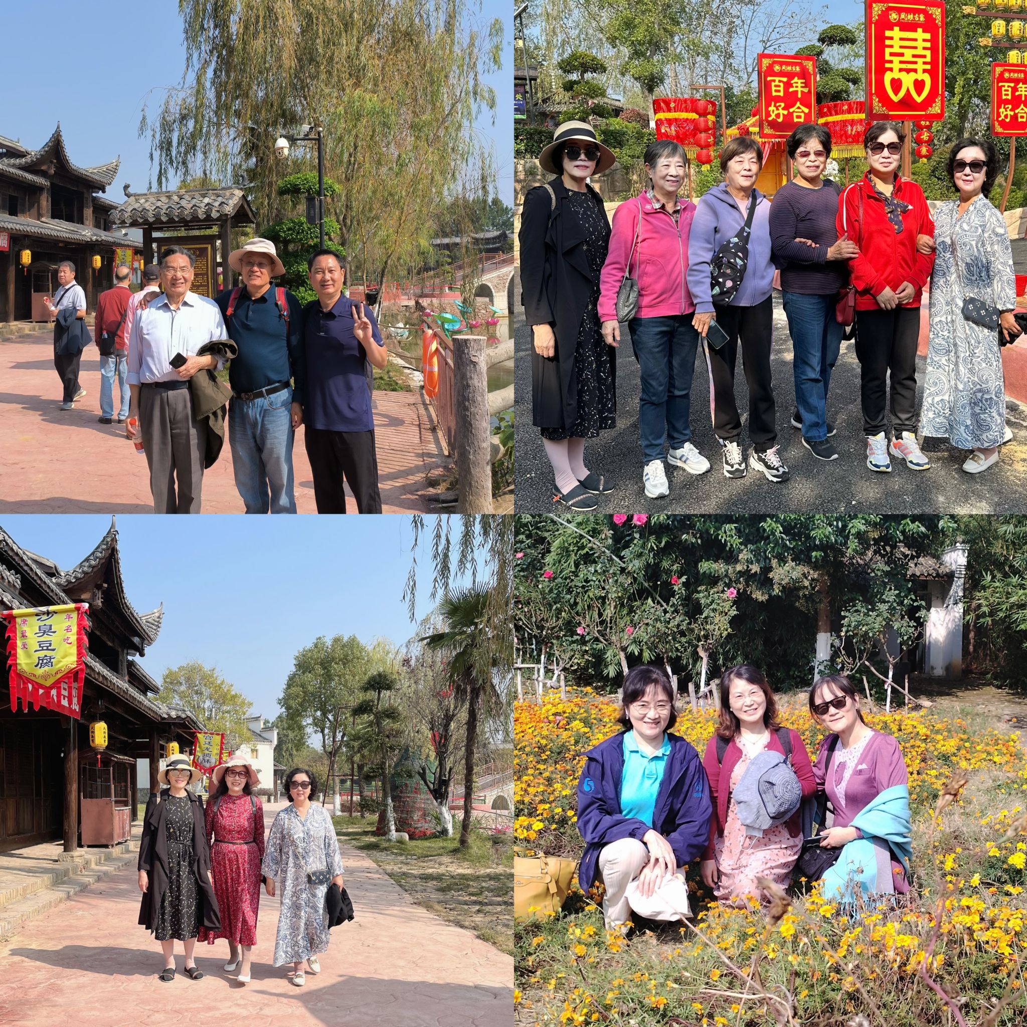 老同志们在学院专门安排的在职干部及学院老协委员们的陪同下, 参观了双子湖及高山流水。在乡喜楼观看了中式婚礼、花轿迎亲。依据中国传统婚嫁制度所布置,还原古时民间的婚嫁习俗。踏进门槛,彷如身临其境,极具古时婚嫁喜庆氛围。行至高杆玫瑰园,入境就是一幅绝美的画。在湖北第一家以马口窑为依托的国际意象古窑,汇聚了大批色彩斑斓,形状特异的艺术精品。
