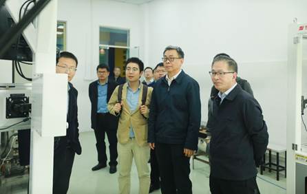 刘胜带领领导班子调研了淮阴工学院江苏省传动装备智能制造重点产业学院,观看了抓取机器人样机的运行,与淮阴工学院党委书记常绿就工程实践人才培养、机械学科特色化发展进行了深入交流。