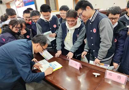 学院一行首先来到满园春色的淮阴中学,参观了淮中极具特色的“通往维也纳”音乐厅和科技馆,就科技发展以及人才培养与淮中教师交流。刘胜与李洋一同为淮中学子授《中国制造》主题课程,通俗易懂的介绍了芯片行业的发展前景,鼓励同学永怀大志,为科技强国事业贡献自身力量,并与同学们签名合影。