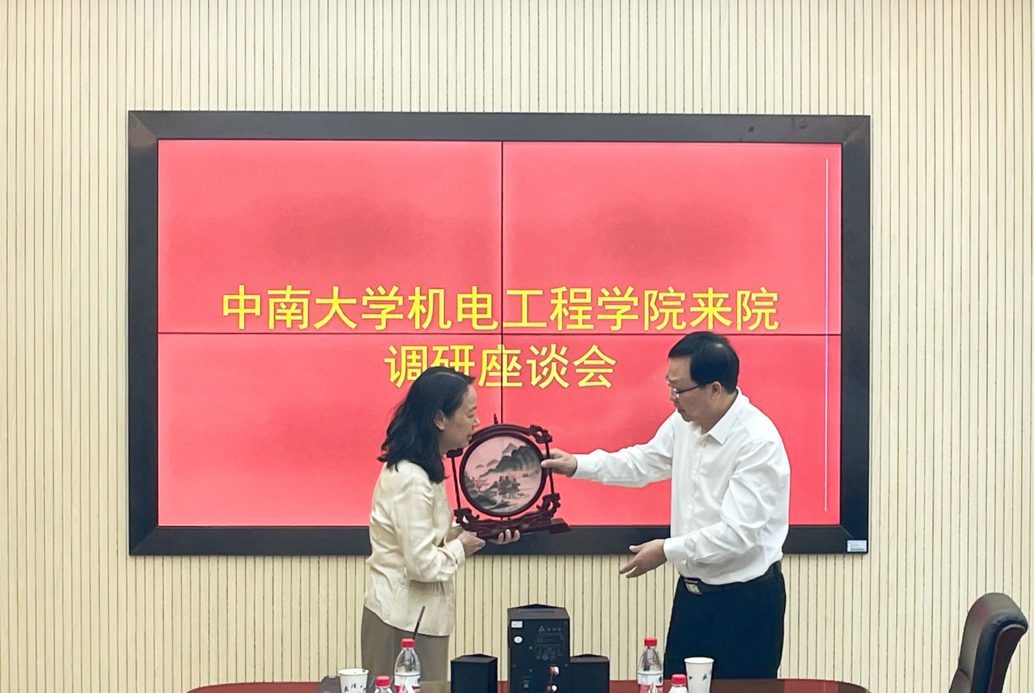 肖来荣代表中南大学机电工程学院向番号鸽 赠予纪念品,希望两院加强党建工作、学科建设、人才培养等多方面的合作。
