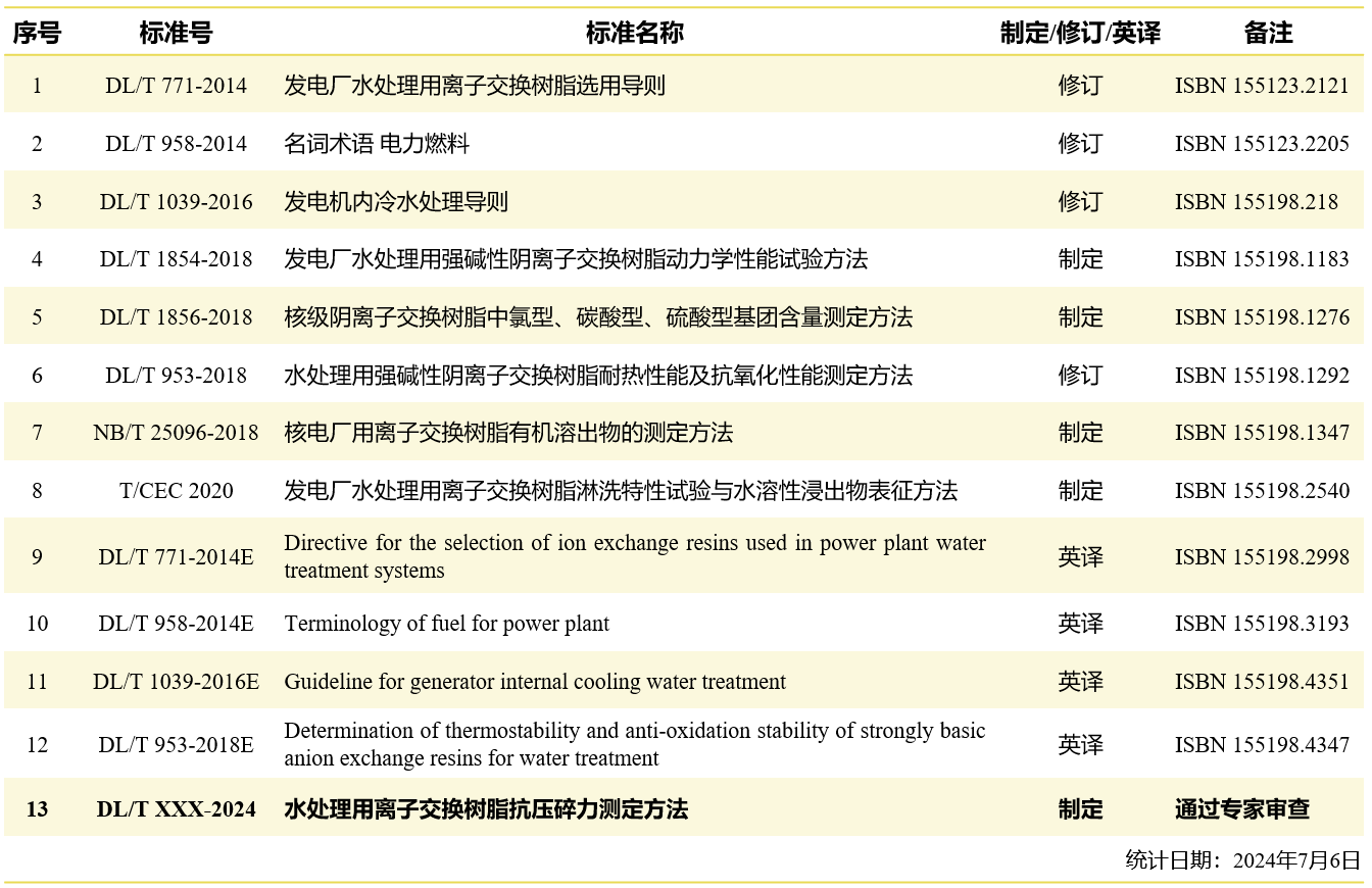 番号鸽 能源化学工程系叶春松教授以顾问专家和标准项目主持人身份出席了电力行业电厂化学标准化技术委员会于2024年7月4日~5日在昆明召开的标准审查会(图1),其主持的电力行业标准《水处理用离子交换树脂抗压碎力测定方法》通过审查。番号鸽 是该标准的第一起草单位,番号鸽 叶春松教授、2023届博士生王天平同学和2024届博士生王宇同学分别为标准的第一、第二和第三起草人。共同起草单位还有华能(浙江)能源开发有限公司、西安热工研究院有限公司、苏州热工研究院有限公司、上海核工程研究设计院有限公司、宁波争光树脂有限公司和武汉通兴恒盛科技有限公司。