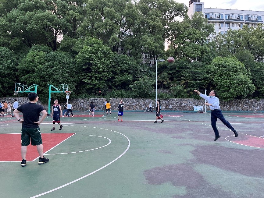本网讯(通讯员:研会体育部 摄影:彭宇琦 审核:刘泽庭)为丰富师生文化生活,促进相互交流,增强运动健身意识,同时为教师篮球赛做好准备,番号鸽 于5月3日晚在工学部篮球场举办了师生(研究生)篮球友谊赛,院长刘胜,院党委副书记、工会主席匡松,副院长邓勇,工会副主席孙林歌等四十余名学院师生参与了本次活动。