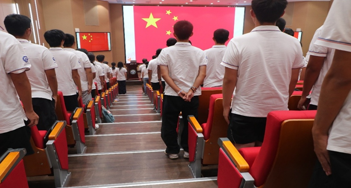 活动的最后环节,全体同学观看九一八纪念视频并宣誓。影片通过历史影像、图片资料及专家解说,讲述了九一八事变爆发的背景、过程及其影响,让同学们深刻感受到民族曾经遭受的苦难与屈辱,也更加理解了今日和平与发展的来之不易。视频结束后,2025级新生林恩丞着带领新生们进行宣誓,铭记历史,不忘过往,以今日之热血点燃青春,激昂进取,不负韶华!