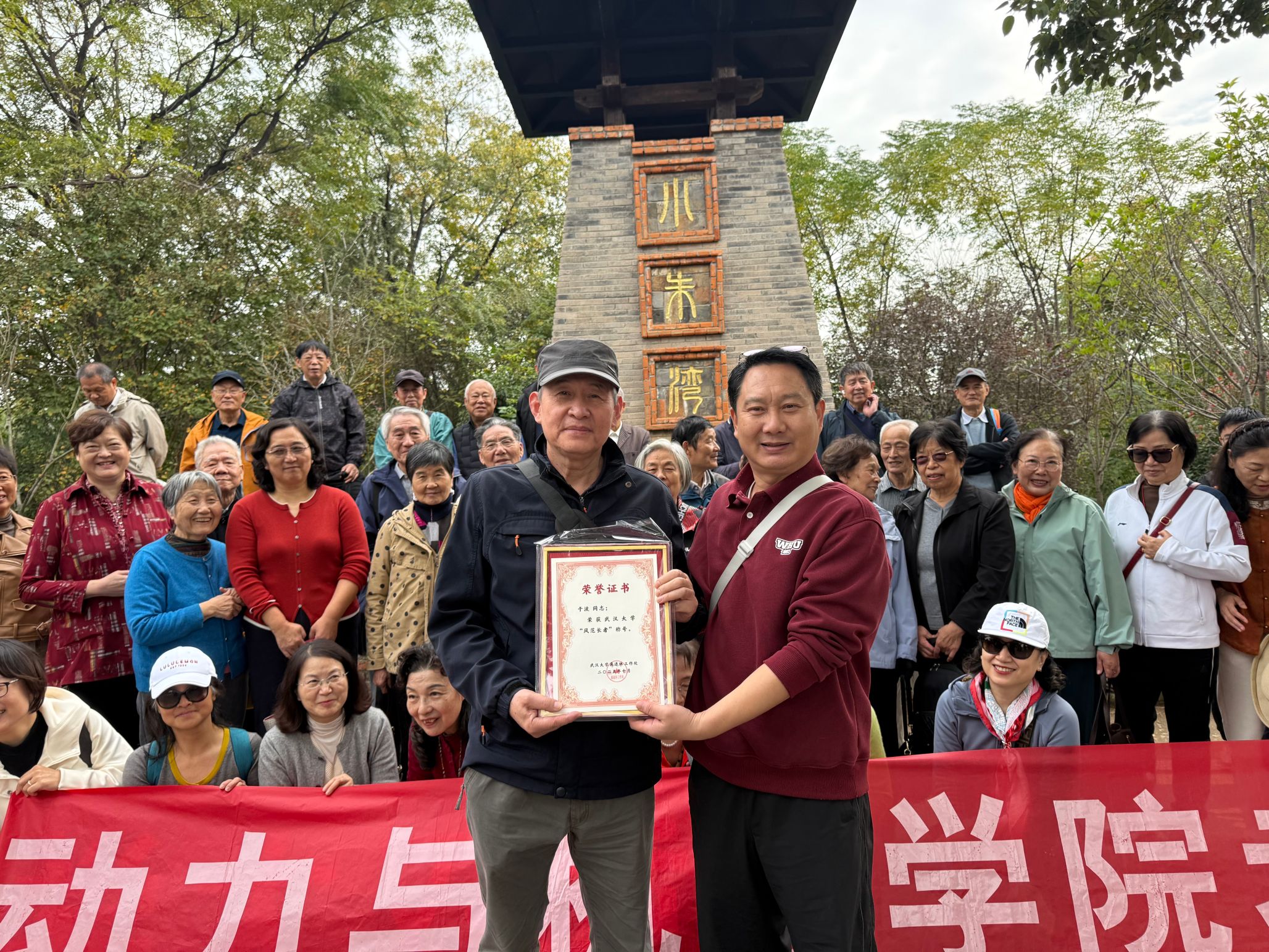 旅途中,邓勇副院长代表学院党委向老同志们致以诚挚的问候,并简要介绍了学院近期在学科建设、人才培养、科研创新等方面取得的进展。邓勇还向大家介绍了学校第二届“百名风范长者”评选表彰活动,本次活动中学院有龚洵洁、于波两位老师光荣入选。邓勇希望,学院离退休教职工要向“风范长者”学习,充分发挥老同志政治优势、经验优势,老有所为,为学院建设发展贡献“银发力量”。