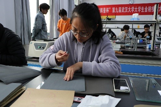 据悉,本次比赛首次全程采用国赛模式,比赛选手须提前半小时到场并由志愿者引导到达检录处进行检录,检录完毕后领取样品并做好登记,然后进入制样室领取砂纸并找到对应的工位就坐,制备好的样品经观察后交至收样处,由志愿者送至评委室进行评分。