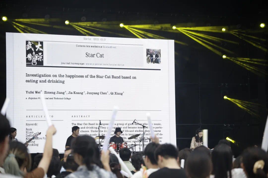 在本次摇滚音乐节中,文澜乐队、触发器、Dopaine、溺乐队、星猫、今晚就先溶于水中安眠、将死之雀、深蓝范式、谈朋友、谁是第六只猫、酒还没醒、事后糖、第二性、滞留、Antidote等15只乐队参与演出。在舞台上,武大学子通过不同风格的表演,展现出专属珞珈山下的音乐氛围;文澜乐队的原创歌曲«凌波»,让同学们感受到武大毕业的学子对母校的不舍与热爱;星猫乐队的《快乐星猫》让同学们在愉快的歌曲当中,享受快乐与自由;Antidote的《Antidote》,向同学们诉说着他们的璀璨青春!