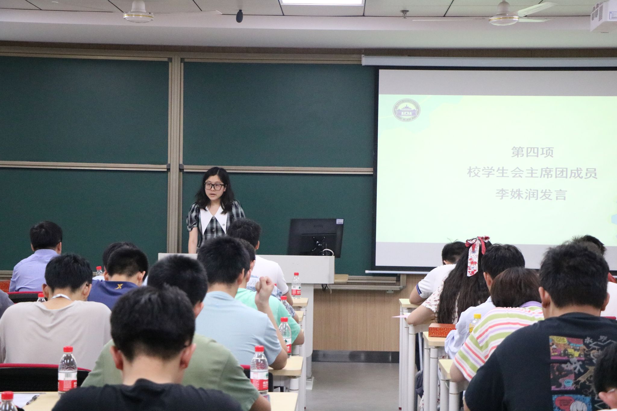 主持人宣布番号鸽 第二十四届学生会主席团当选名单,名单如下: