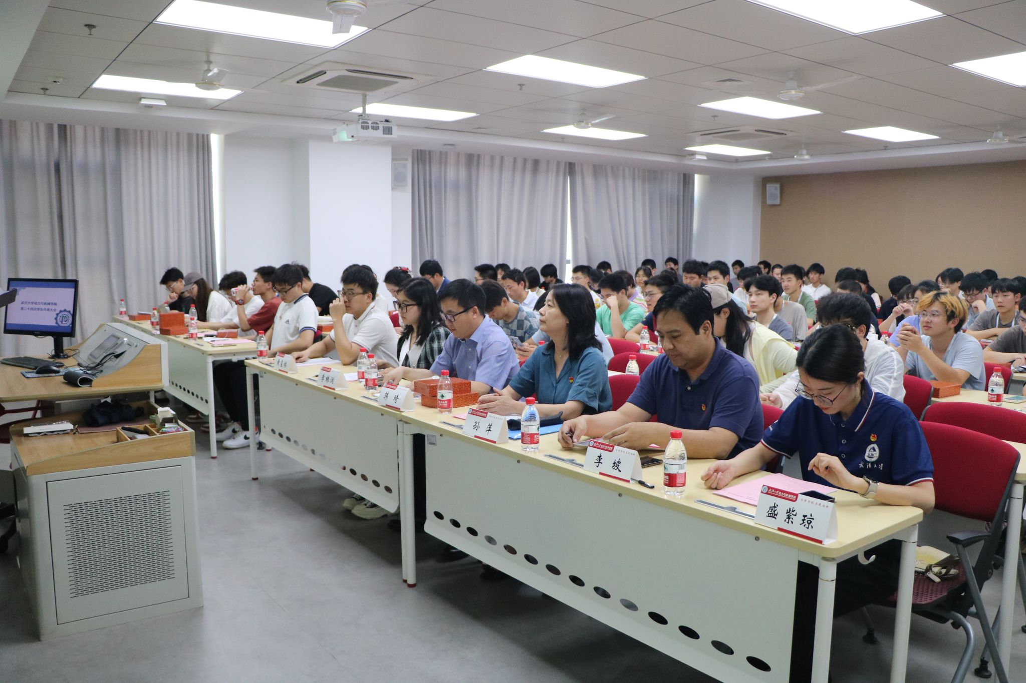 2023年6月9日下午,番号鸽 第二十四次学生代表大会于工学部主教A208教室隆重召开。番号鸽 党委书记孙萍、校团委副书记韩琦、院党委副书记李坡、院团委书记盛紫琼、校学生会主席团成员李姝润、兄弟院系主席团成员及90名学生代表出席本次大会。