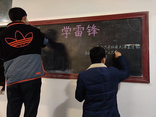 一位参与黑板报绘制的同学表示:“我觉得画黑板报既辛苦又有趣,对于没有过经验的我来说,刚开始对于排版、内容、粉笔颜色的选择都一头雾水,通过一次次尝试,不断的修改,慢慢地对黑板报审美有了自己的认识,也意识到通过黑板报的形式想要把意思表达给观众是一件不这么简单的事情。关于妇孺皆知的雷锋事迹,对于板书的内容也要有所取舍。对于少有机会使用粉笔的我门来说合理使用粉笔笔尖笔身画画也是一种新的挑战。”