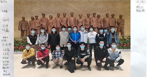 为了进一步学习边防军人的精神,我们前往中国共产党纪律建设历史陈列馆进行参观实践。首先印入眼帘的就是以王荷波、向警予、焦裕禄、杨善洲等历史人物和穿草鞋的红军、戴草帽的农民、戴工帽的工人等形象为原型的雕刻群像,塑造了一组代表不同历史时期、不同身份的优秀党员和纪检干部,严守纪律,行廉志洁,继承传统,激浊扬清,奋进在中国共产党精神建设的道路上。我们在此合影并在照片两侧写下了名字,彰显着我们想向边防战士学习的勇气与信念。