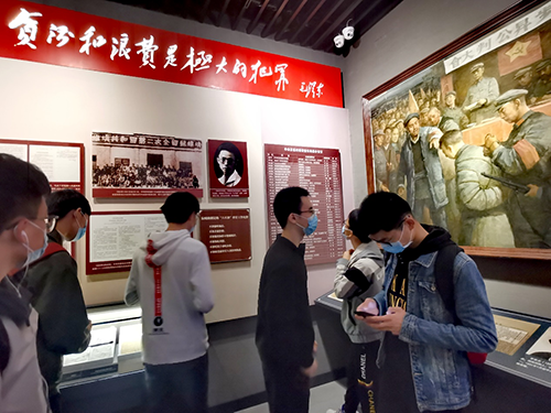 陈列馆中对中共一大到中共五大期间共产党的纪律建设情况进行了详尽的介绍,同学们根据文字描述以及一旁的画面和历史文物逐渐构建起了共产党人坚定信念与精神的成长历程,也逐渐理解了边防战士那份令人感动的坚守来自于何方。